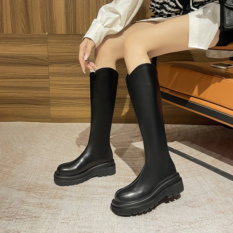 Boots Women Winter New Thick Bottom Small below the Knee Knight Boots Spring and Autumn Slimming Handsome High Leg Boot