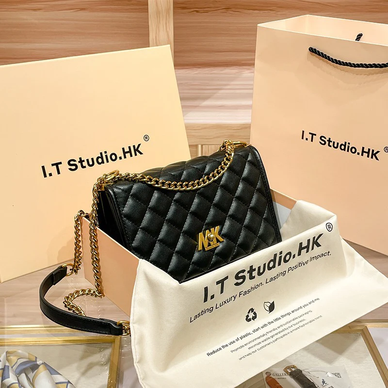 Hong Kong Genuine Leather Bag Classic Style Diamond Pattern Chain Bag Women's 204 Bag New Niche Shoulder Crossbody Small Square Bag