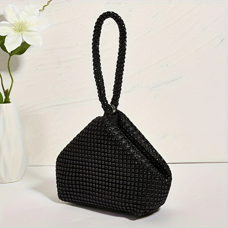 Mini Sparkling Glitter Clutch Purse - Zipper Closure, Polyester Lining, Solid Color, Fashionable Wrist Bag for Women - Perfect for Carnaval, Wedding, Music Festival and Night Out