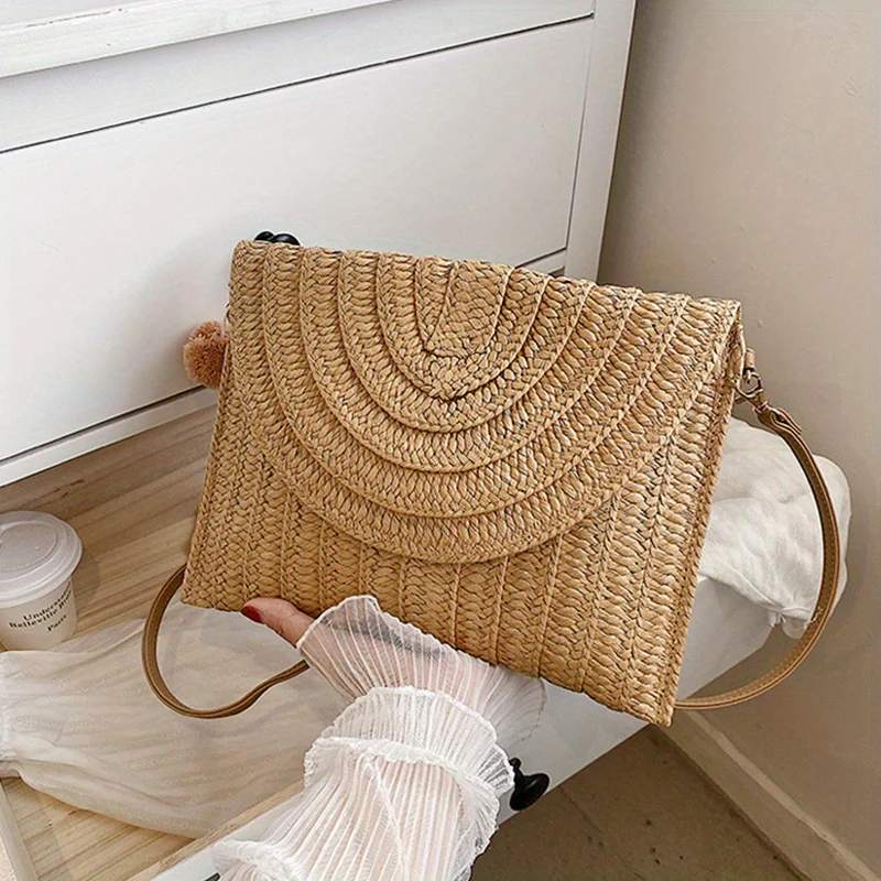 Classic Minimalist Paper Straw Clutch Bag with Removable Strap and Wristlet - Magnetic Closure, Polyester Lined, Solid Color, Portable Storage, Perfect for Holidays