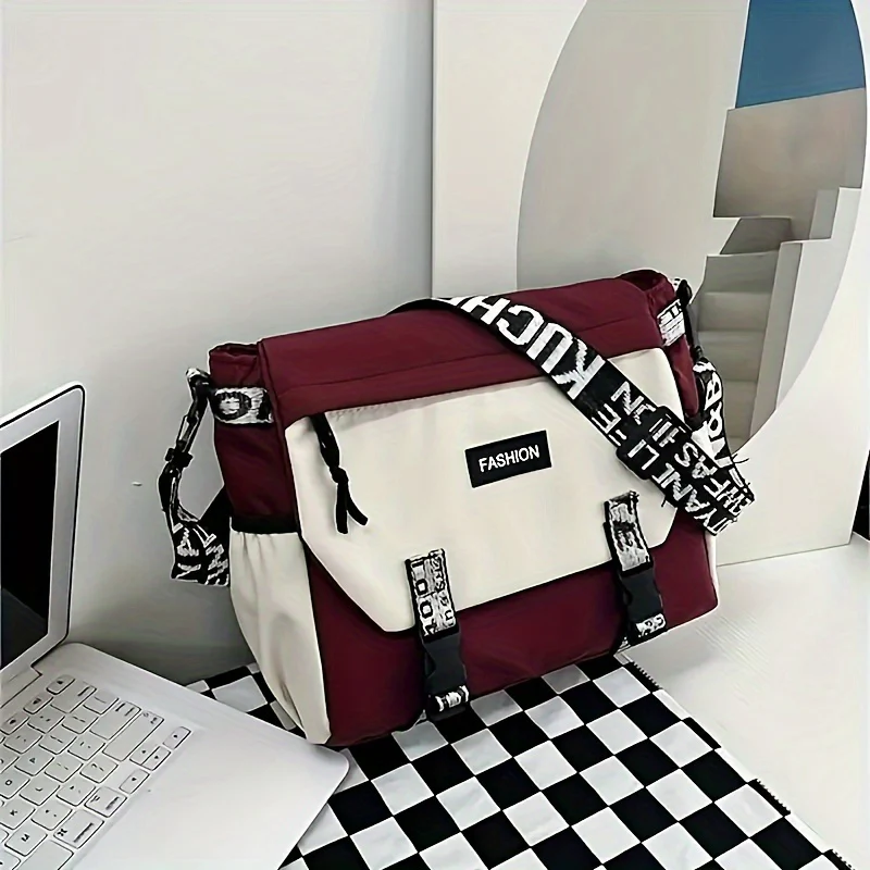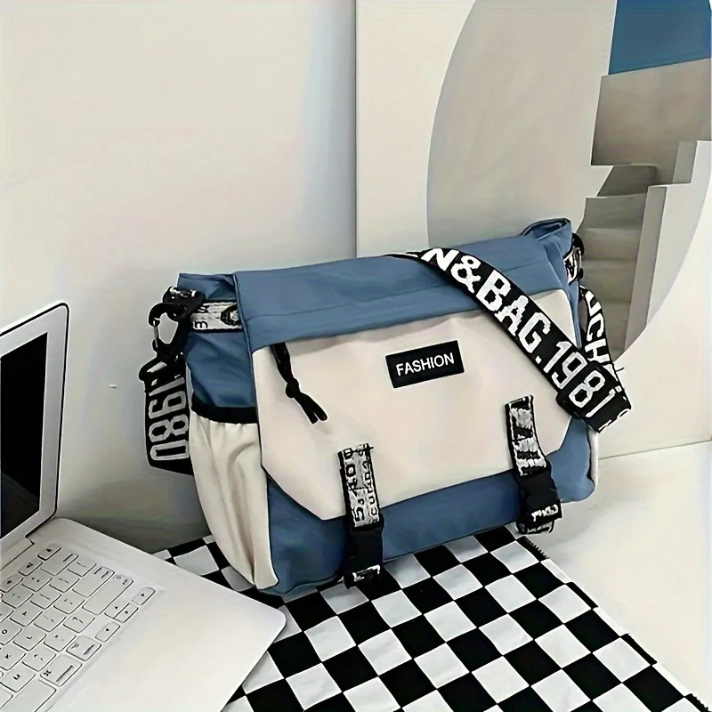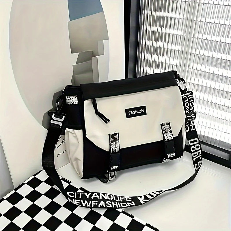Fashionable Graphic Crossbody Bag with Adjustable Strap - Zipper Closure, Polyester Lining, Foldable Design - Preppy Urban Style Messenger Bag for School and Daily Use