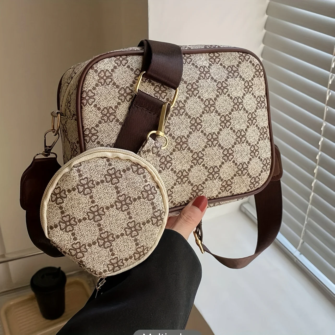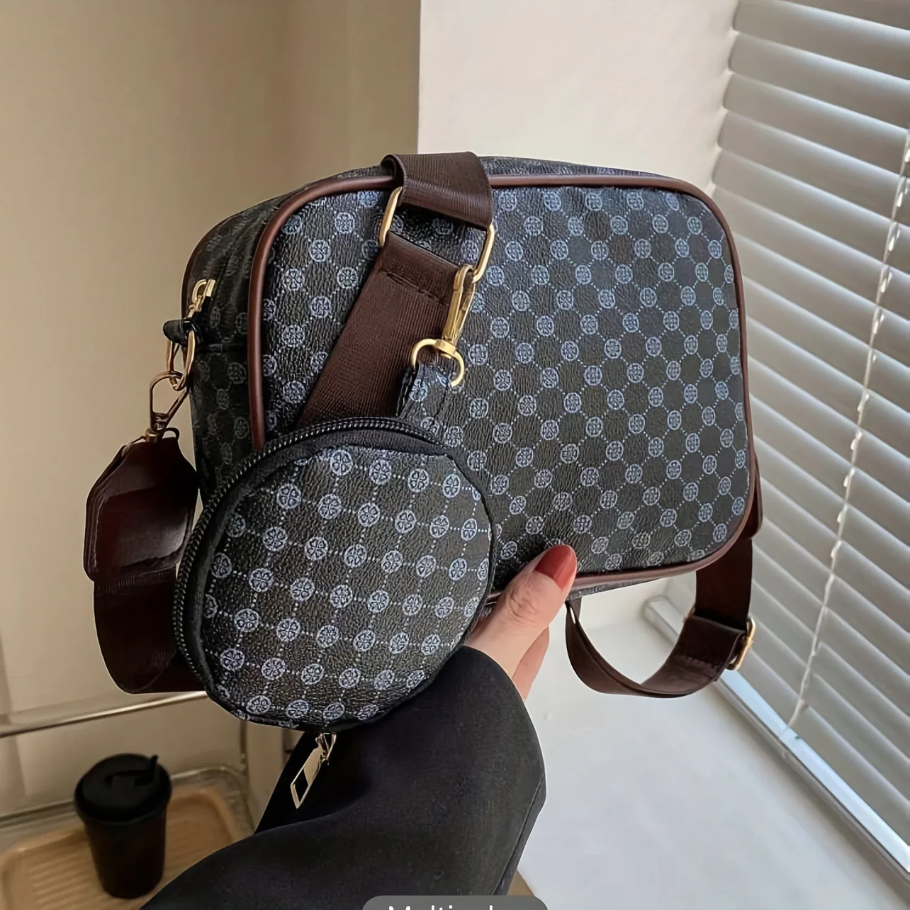 Fashion-forward Geometric Pattern Crossbody Bag - Durable PU Leather Shoulder Bag with Stylish Round Coin Purse for Women - Adjustable & Convenient