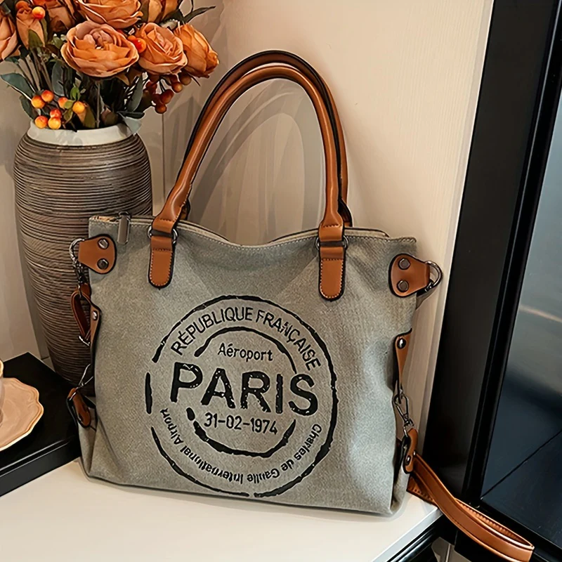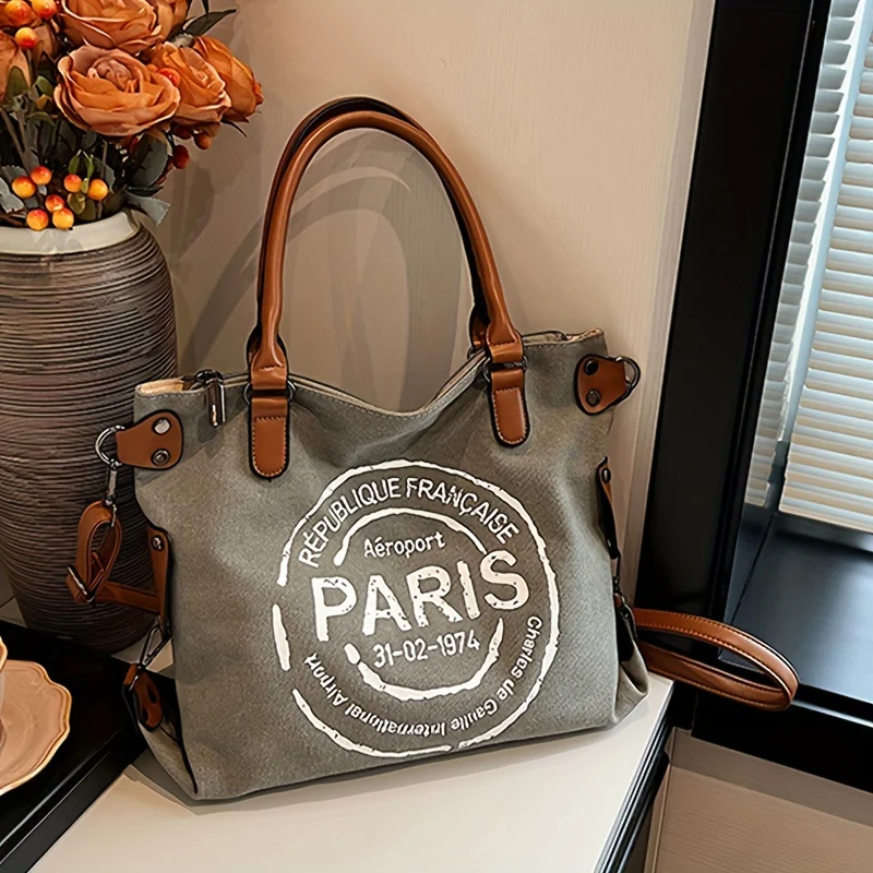 1pc Stylish Vintage Canvas Tote Bag - Spacious, Durable, and Elegant Shoulder Crossbody Bag with Removable Strap, Zipper Closure, and Positioning Printing - Perfect for Work, School, and Daily Use