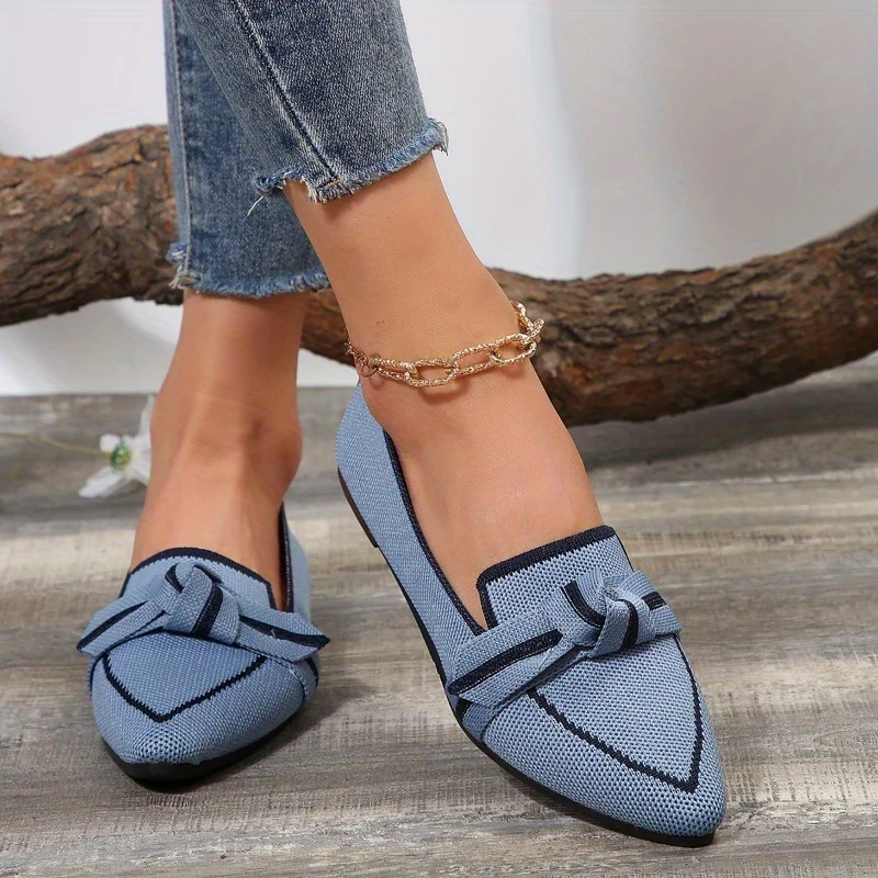 Elegant Bowknot Ballet Flats - Chic, Breathable Pointed-Toe Slip-Ons for All-Season Fashion and Comfort