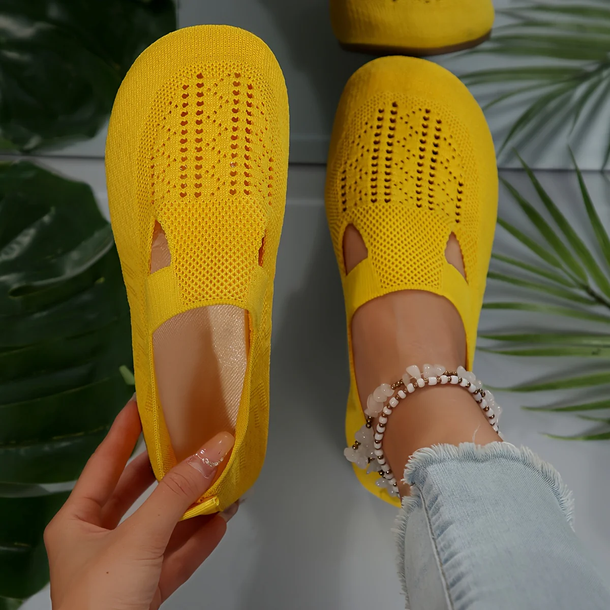Womens Solid Color Breathable Mesh Flats - Fashion Flying Woven Slip-Ons - Ultra-Lightweight, Pillow Comfort Shoes