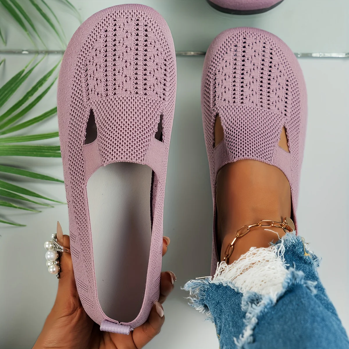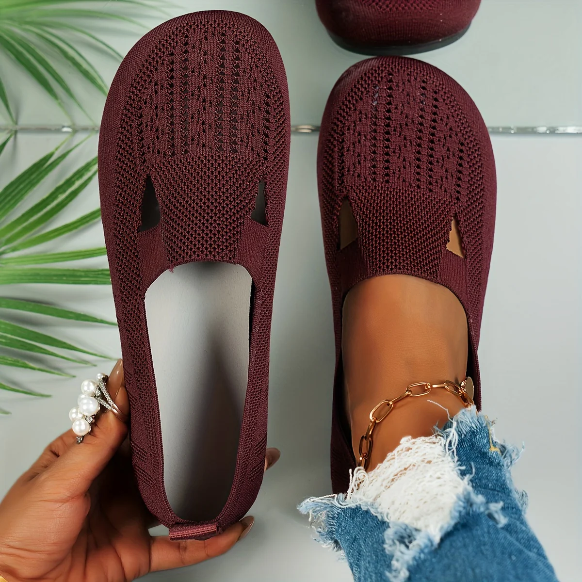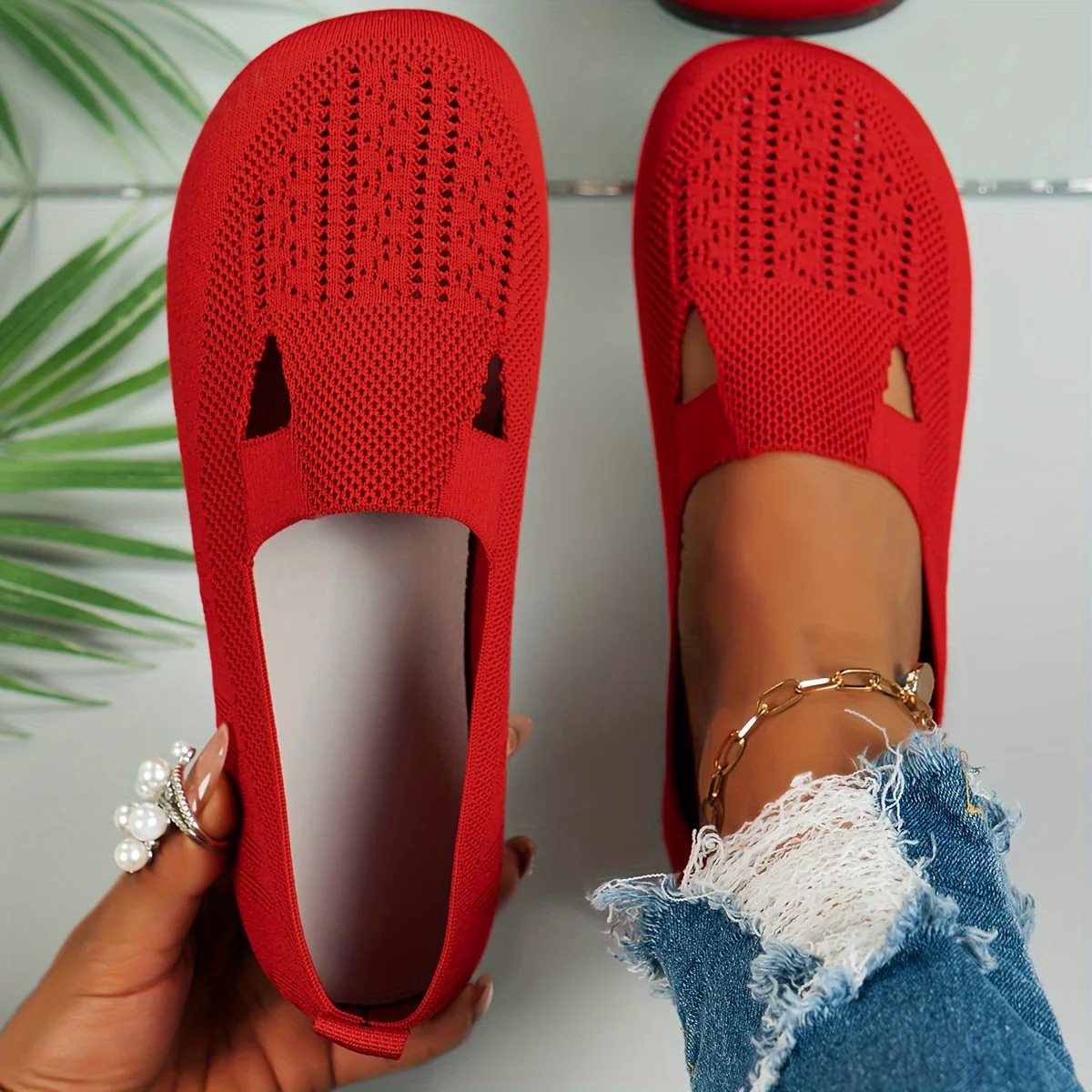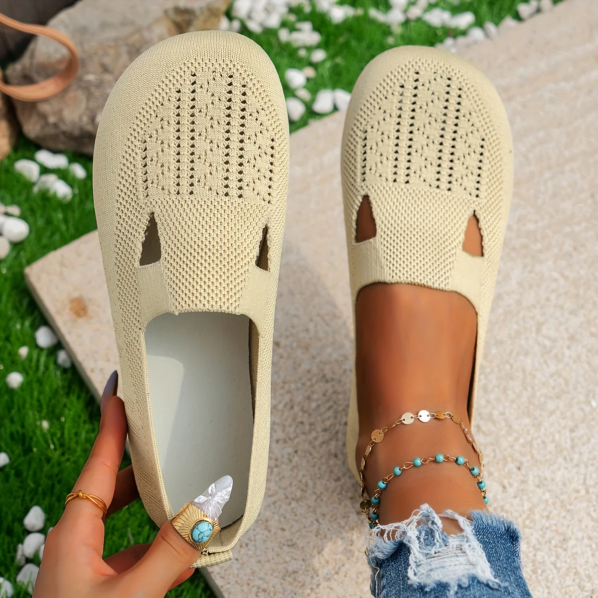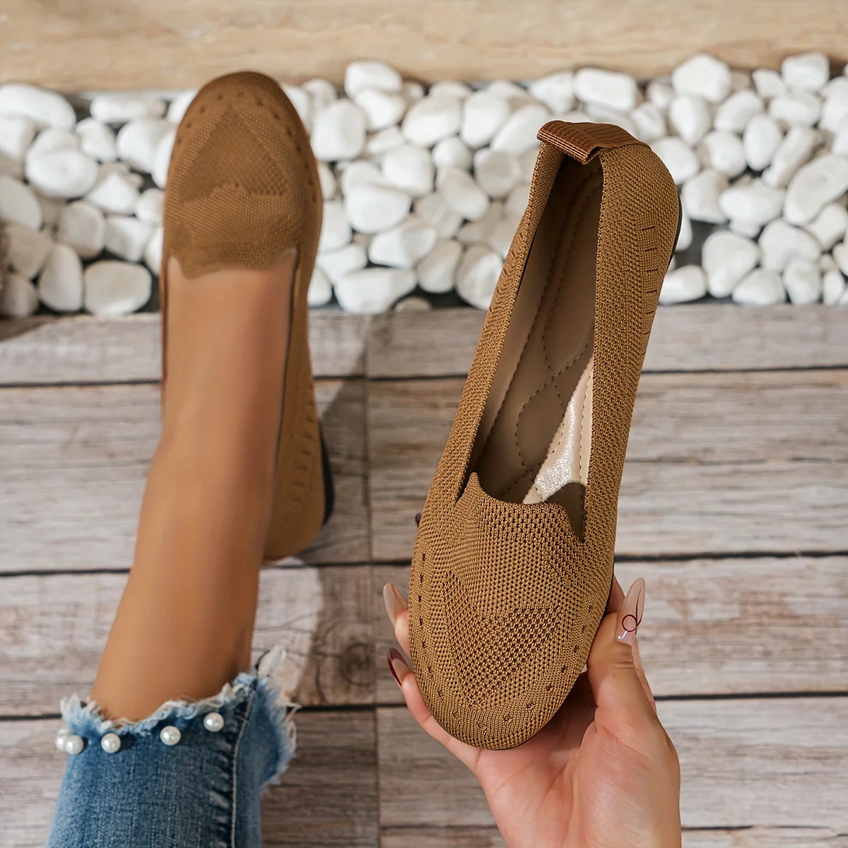Comfy Womens Flat Shoes - Breathable Knitted Slip-On Loafers for Casual Outdoor Walking - Lightweight Fabric Upper, TPU Sole, and Soft Insole for All-Season Comfort