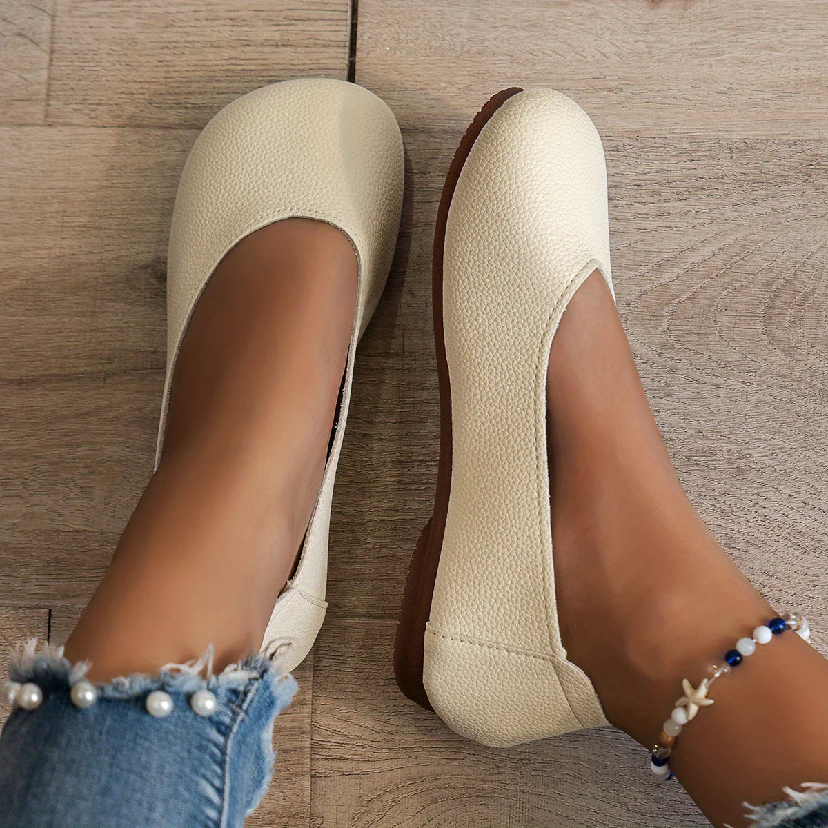Chic Lightweight Mary-jane Flats for Women - All-Season Elegant Slip-On Work Shoes in Solid Color