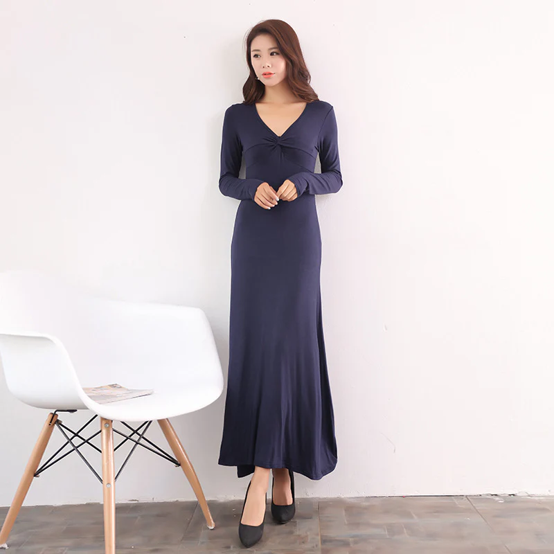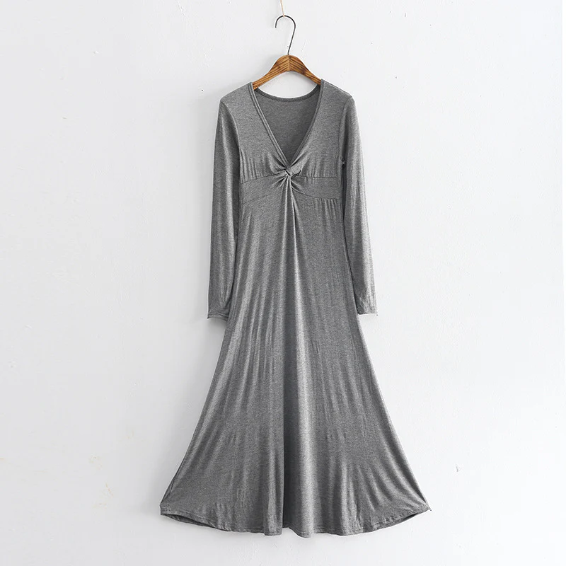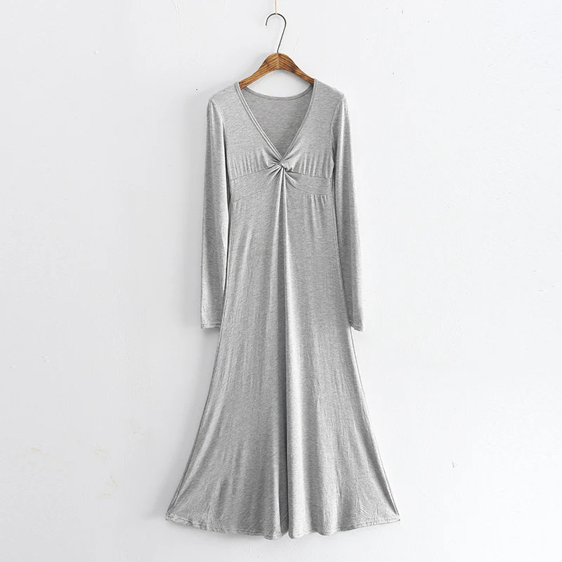 Long Sleeve Dress Women's Spring and Autumn New Korean Style Evening Dress Fashionable Modal Long Dress Pajamas