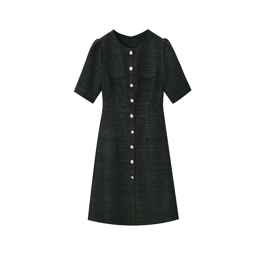 [Shengdu] 24 Spring and Summer New Socialite Gentle Advanced Sweet Beauty Blue Classic Style Short Sleeve Dress