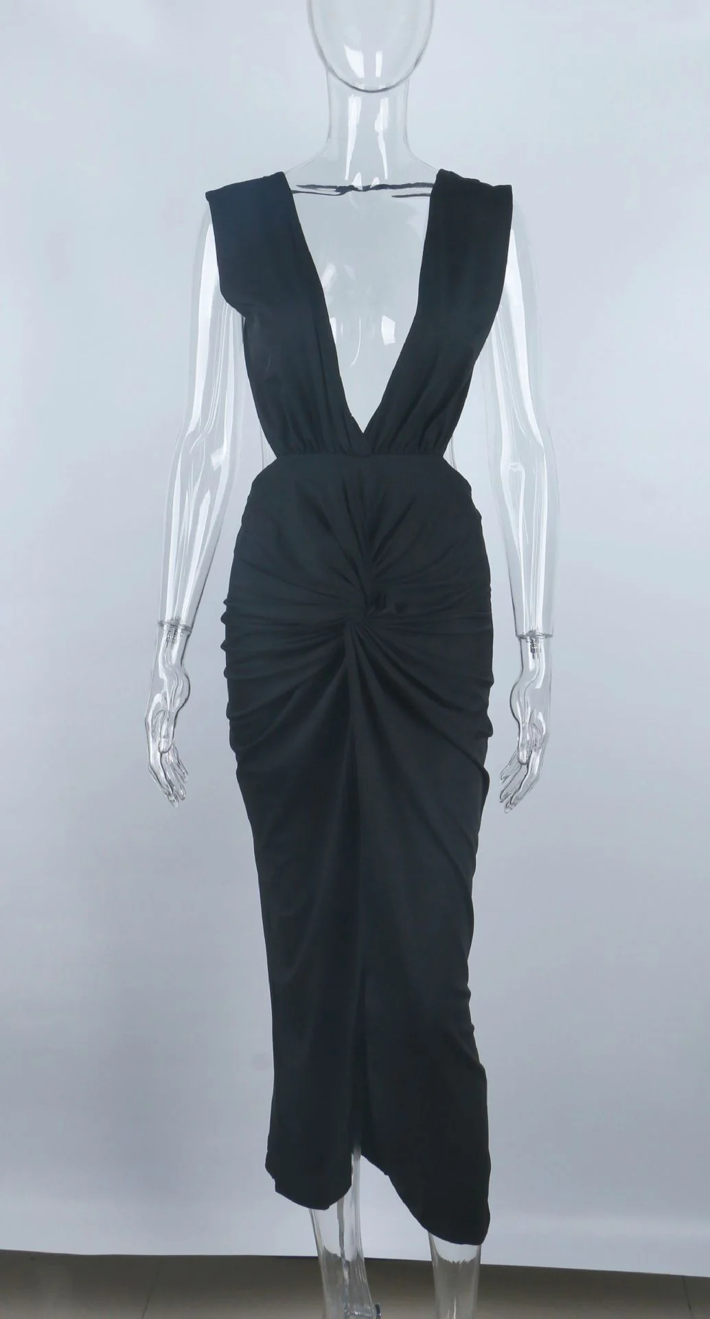 Hot Trade Spring and Summer New Women's Clothing European and American Internet Hot Sexy Deep V Sleeveless Backless Evening Dress Party Dress