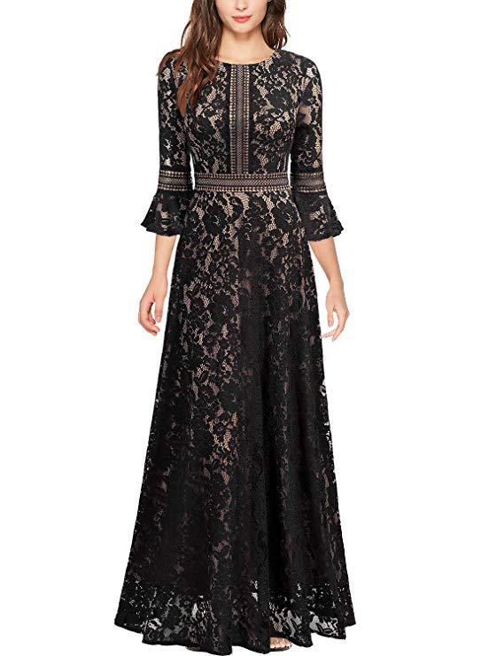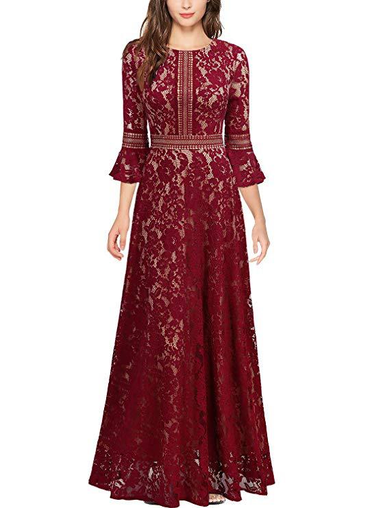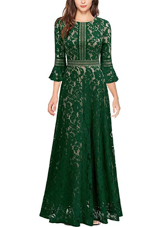European and American New Summer New Three-Quarter Sleeve Dress Hollow Lace Slim Lace Evening Dress