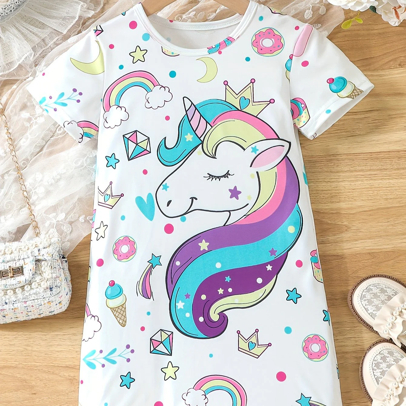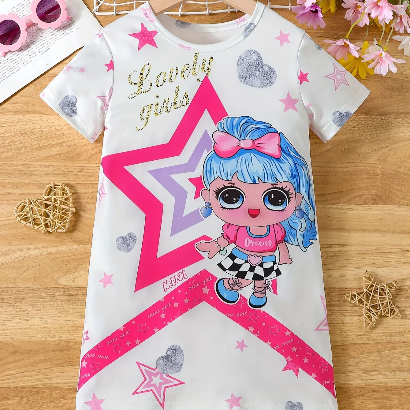 Summer-Ready Princess & Heart Graphic Dress for Girls | Casual Style, Comfort Fit & Easy Care