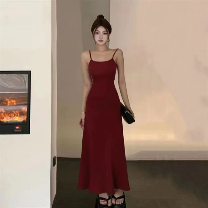 Hot Girl Elastic Sling Dress Women's Summer 2023 New Waist Slimming off-Shoulder Innerwear Bottoming Dress