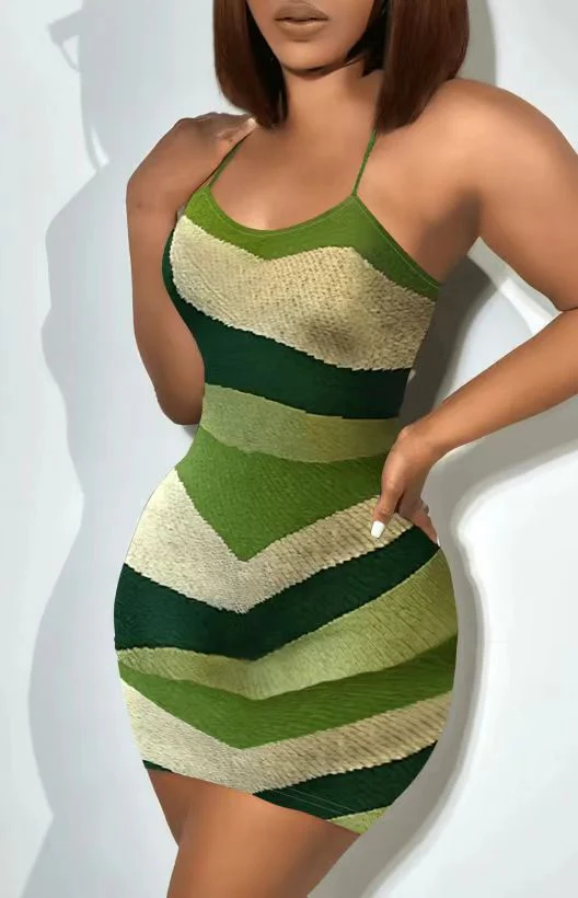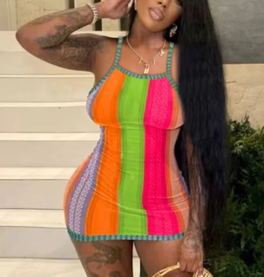 European and American Hot Women's Clothing New Summer Striped Slim Strap Dress
