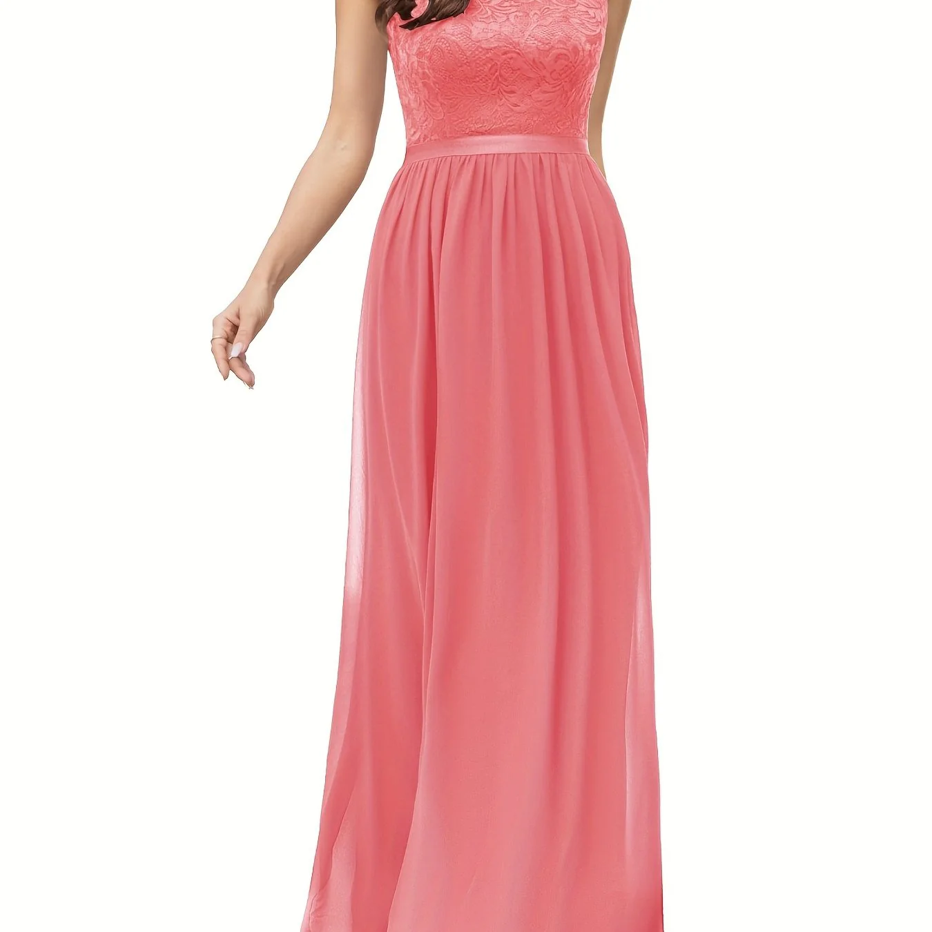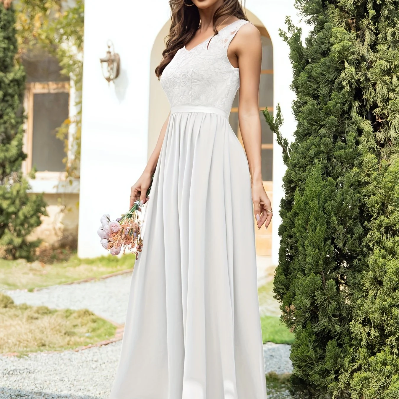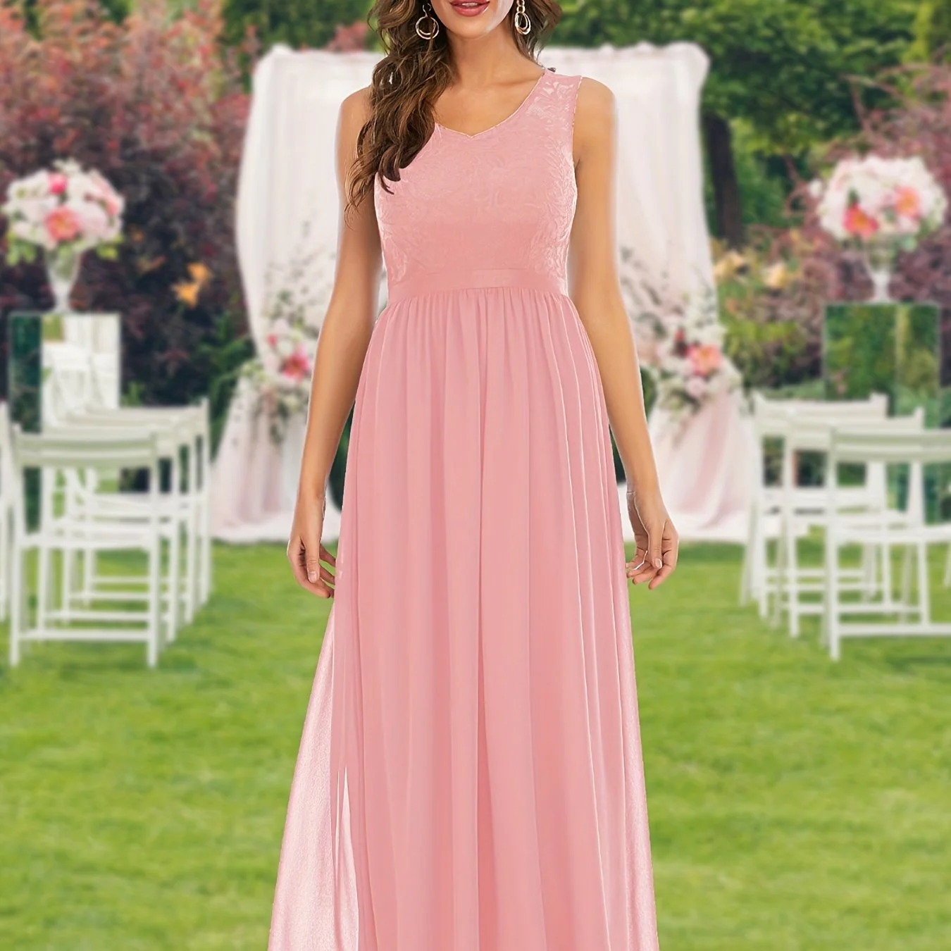Alluring Solid Lace V-Neck Aline Dress - Timeless Sleeveless Design for Weddings & Special Occasions - Bridesmaids & Formal Events - Womens Clothing