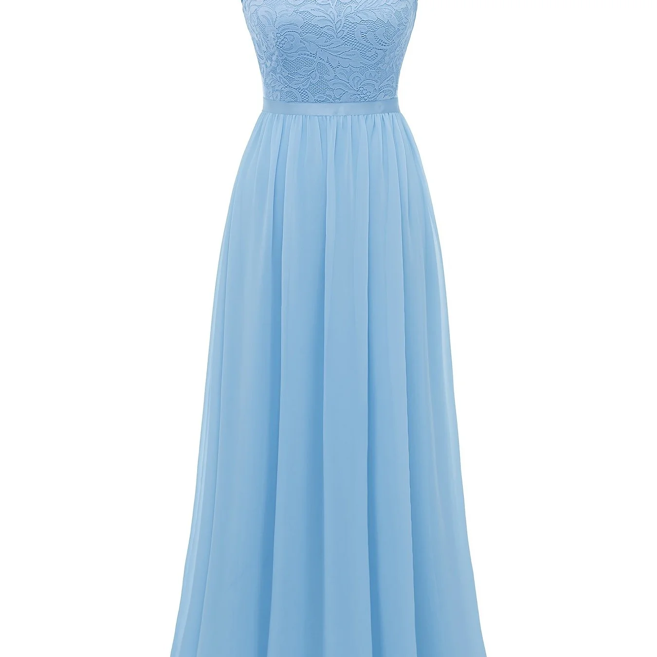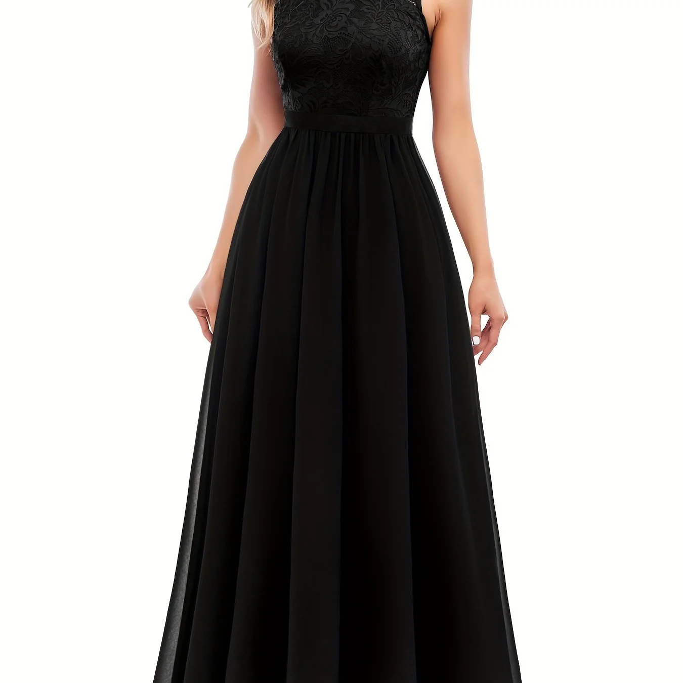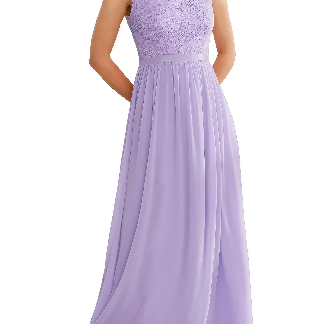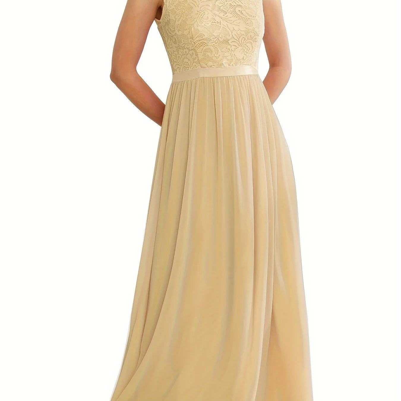 Alluring Solid Lace V-Neck Aline Dress - Timeless Sleeveless Design for Weddings & Special Occasions - Bridesmaids & Formal Events - Womens Clothing