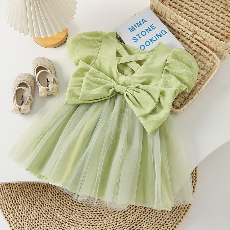 Girls' Summer Dress 2025 New Children's Korean Style Fashion Bowknot Skirt Baby Girl Fashionable Princess Dress