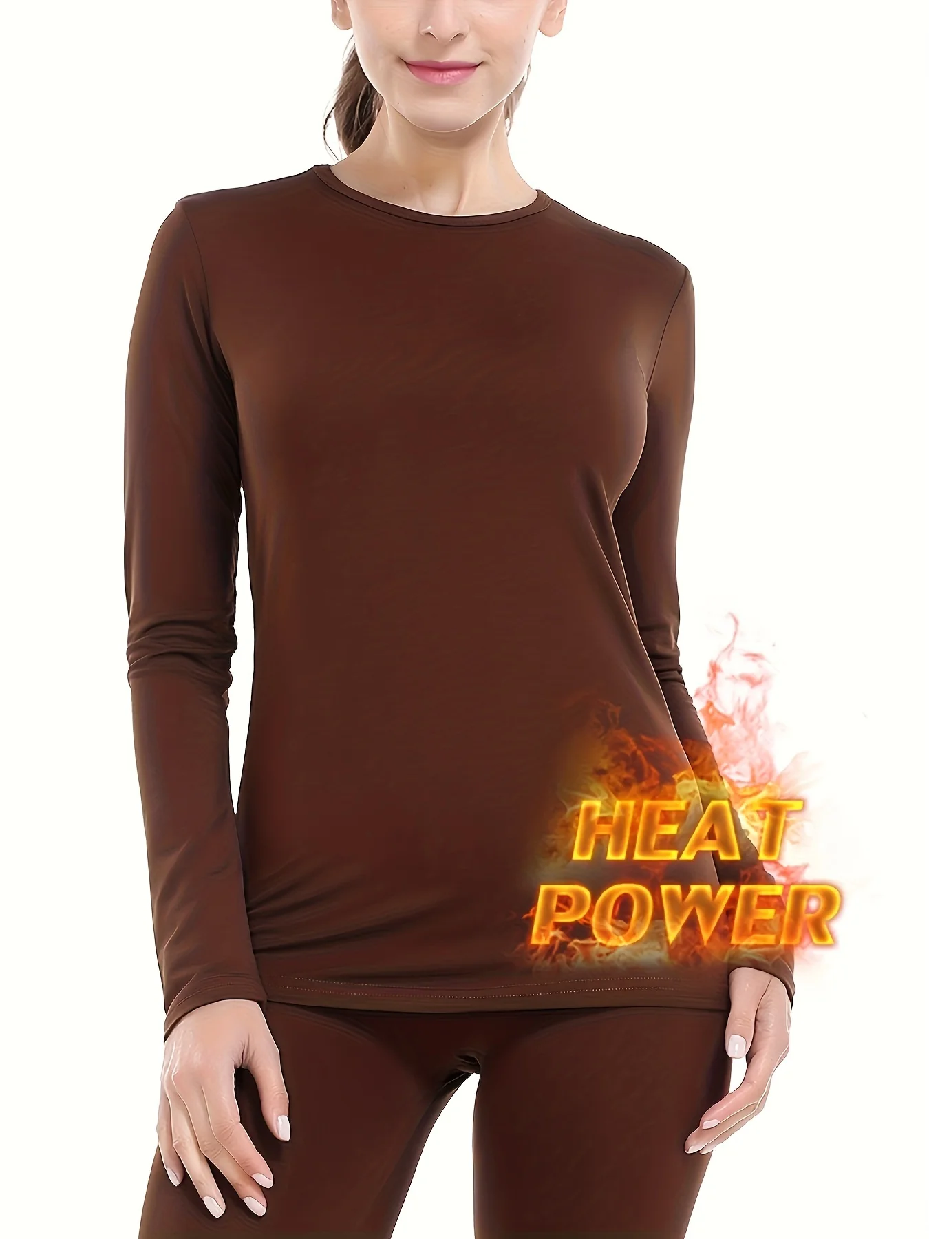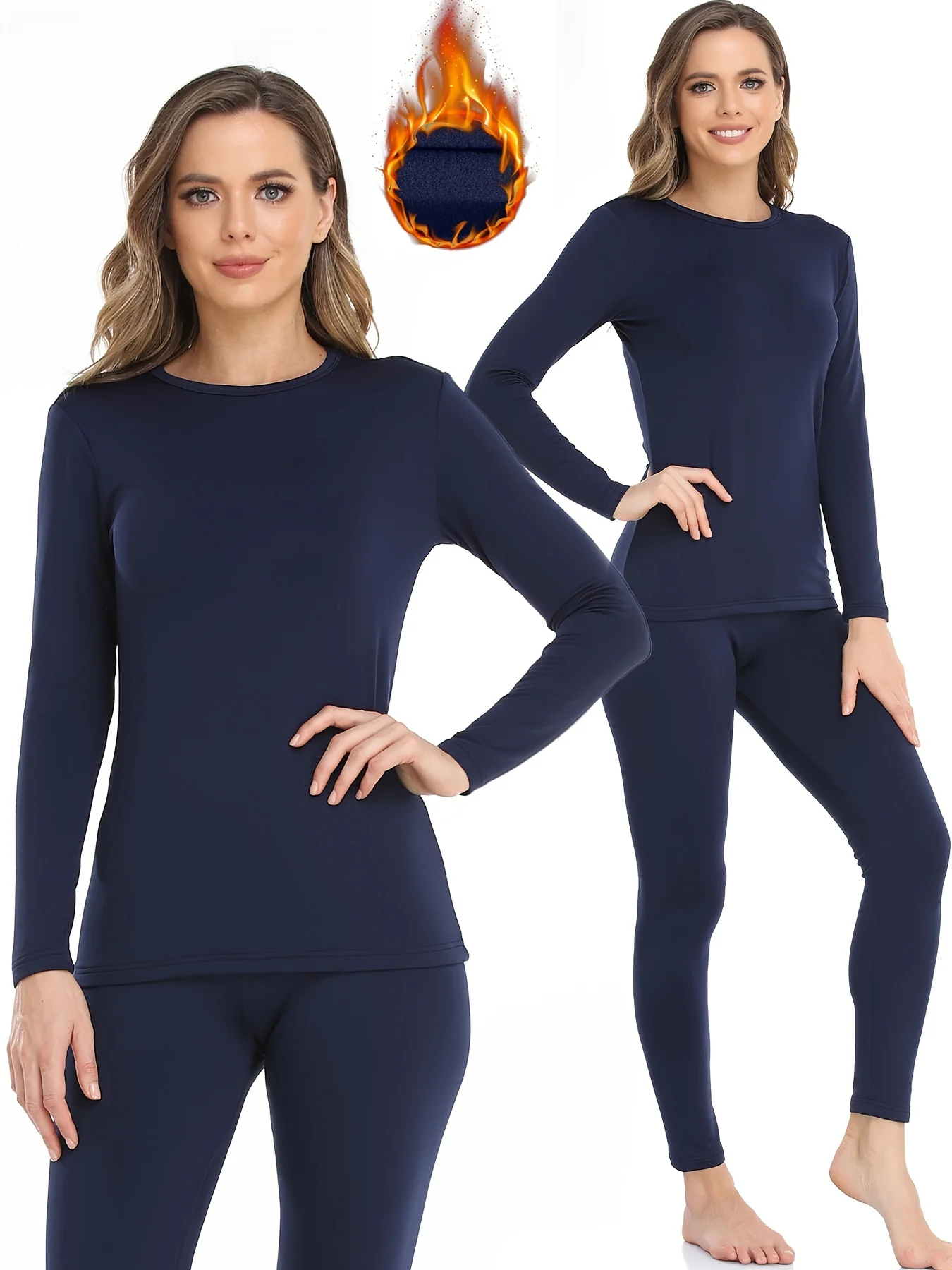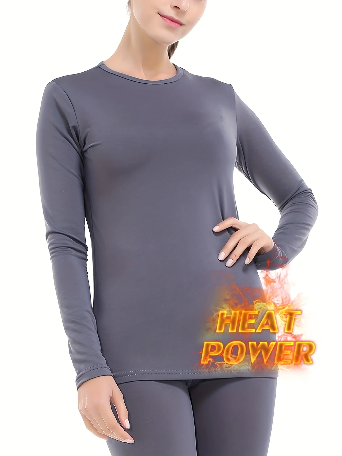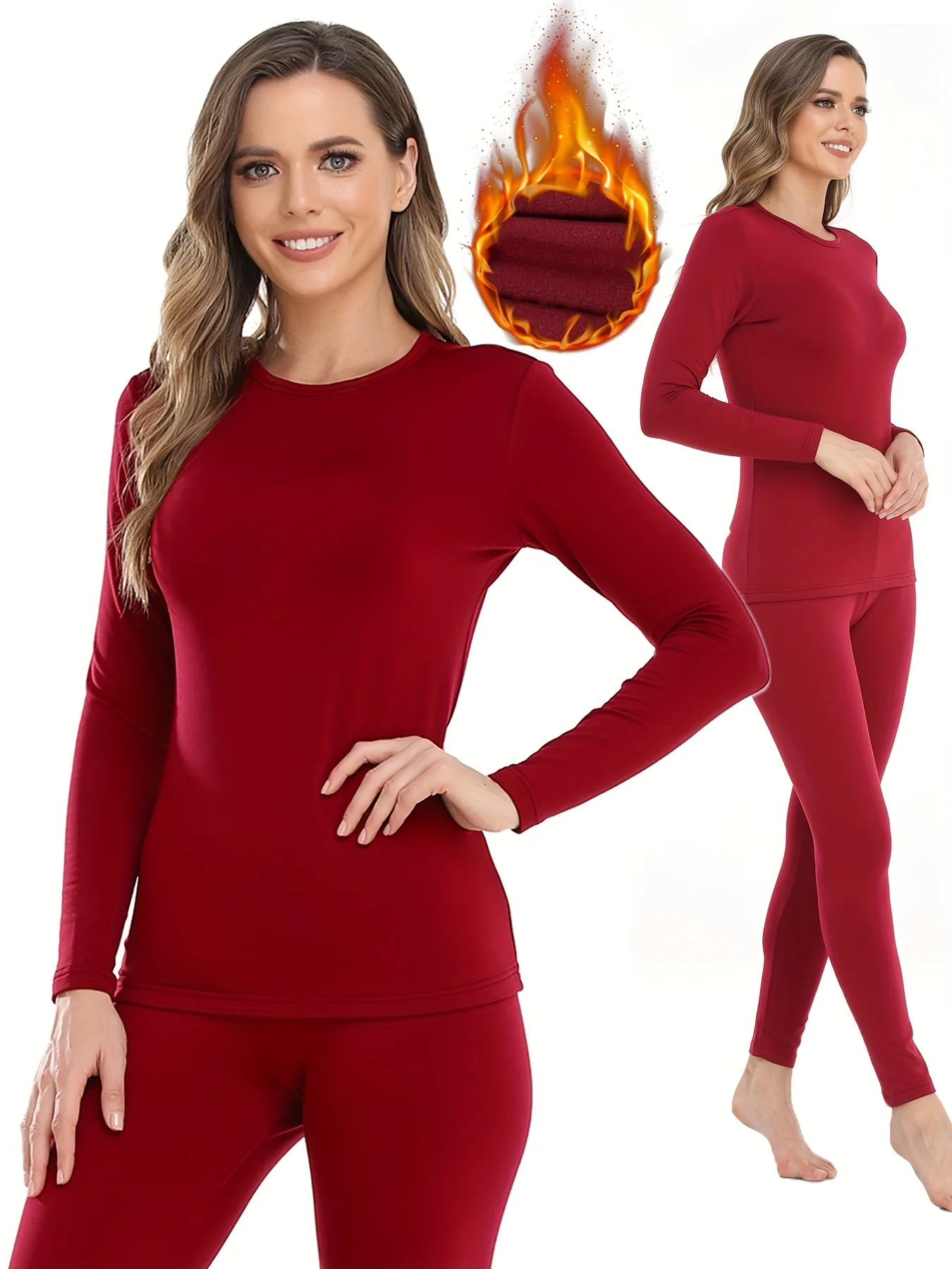 2 Pcs Ultra-Soft Seamless Thermal Long Sleeve Crew Neck Tops for Women - Fall & Winter Loungewear & Underwear Set
