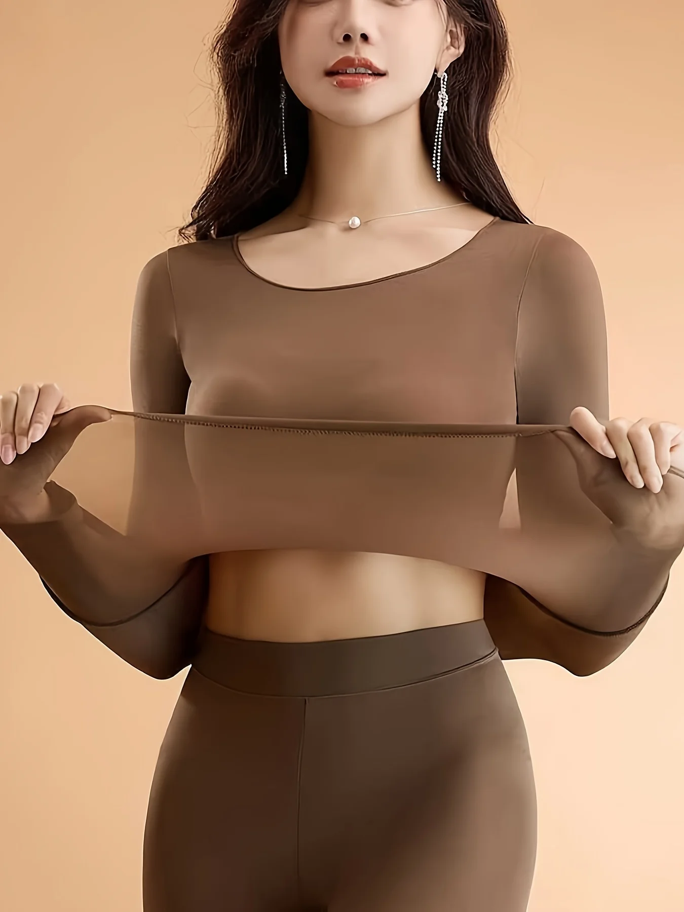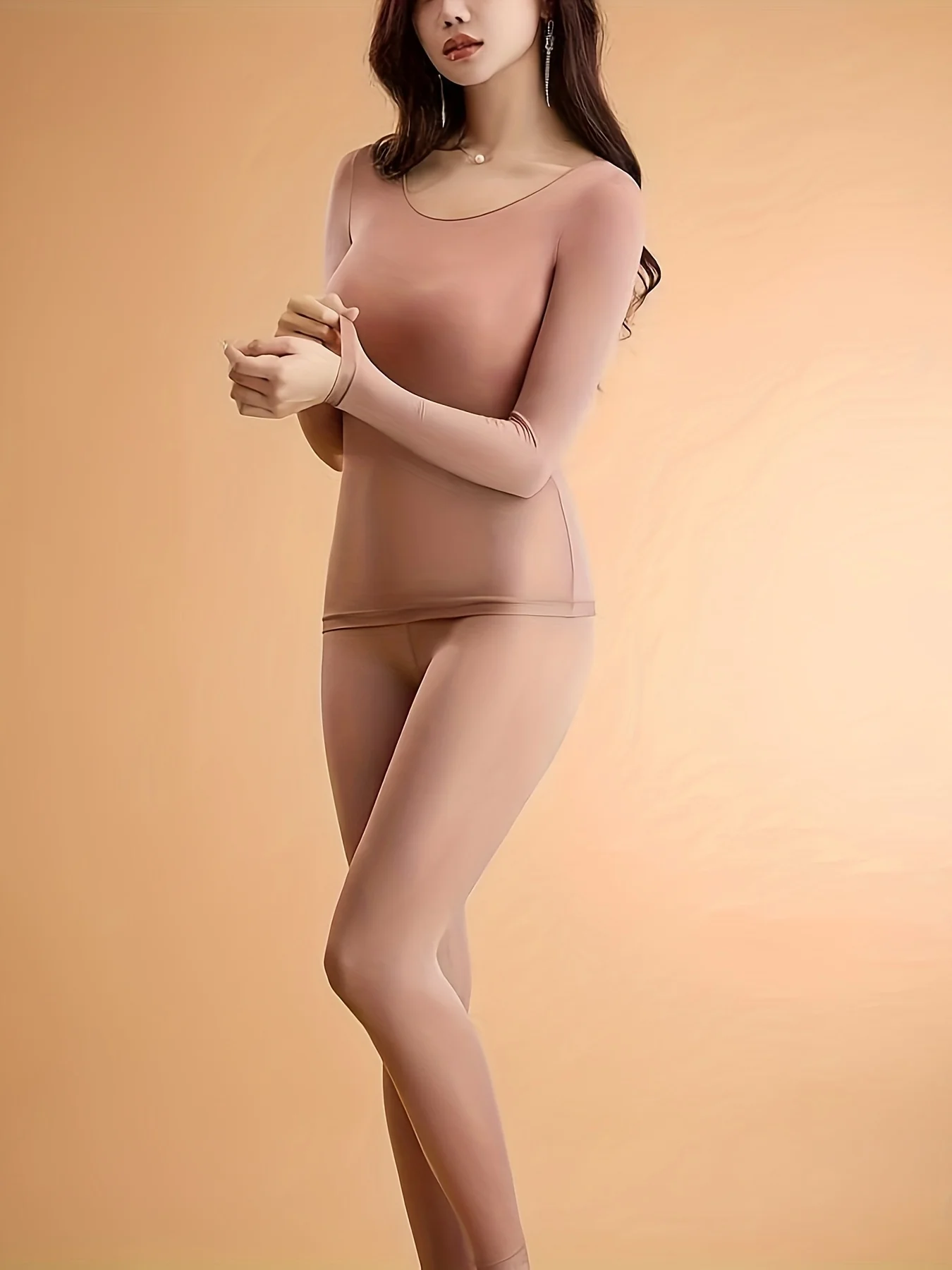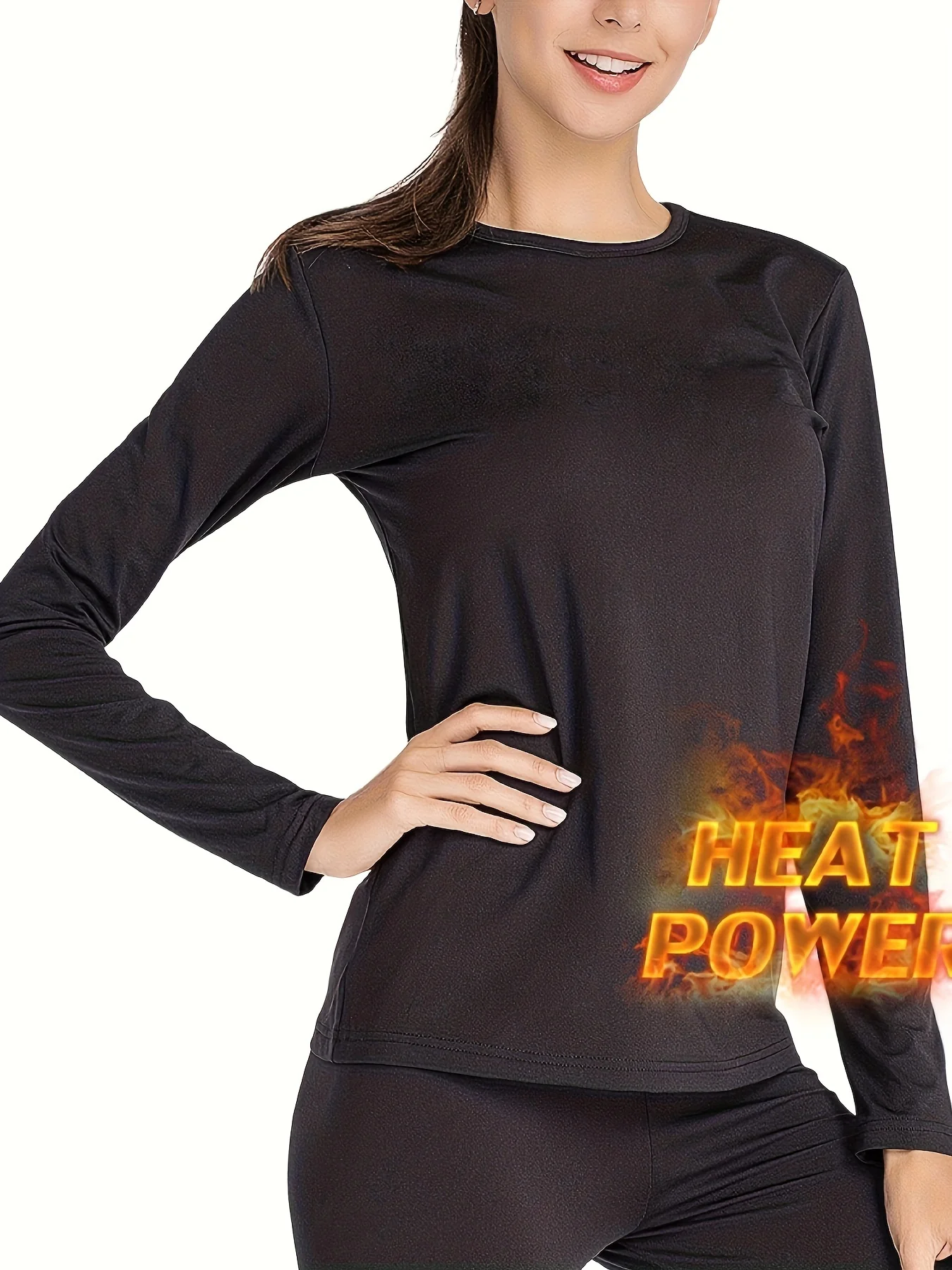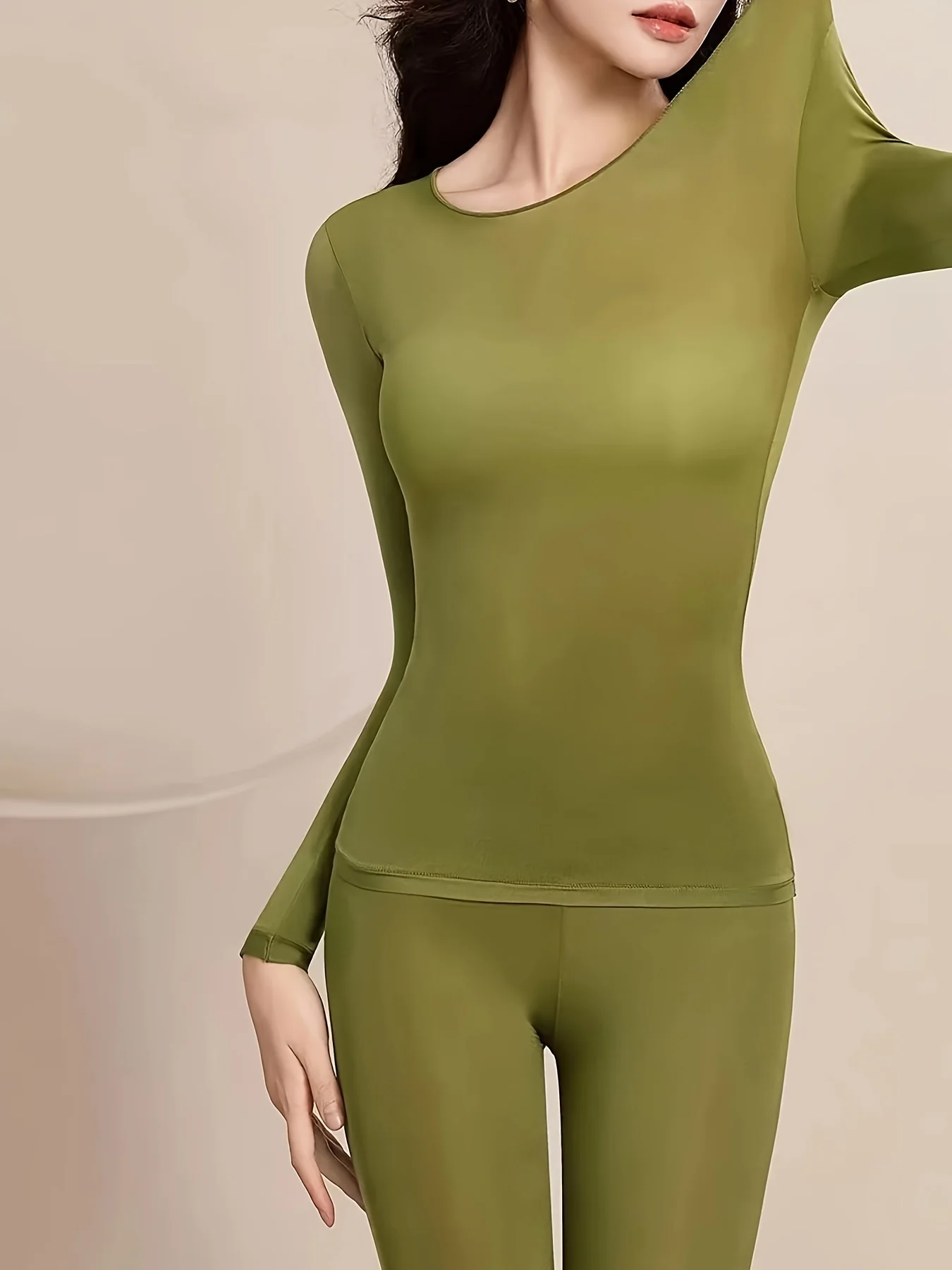2 Pcs Ultra-Soft Seamless Thermal Long Sleeve Crew Neck Tops for Women - Fall & Winter Loungewear & Underwear Set