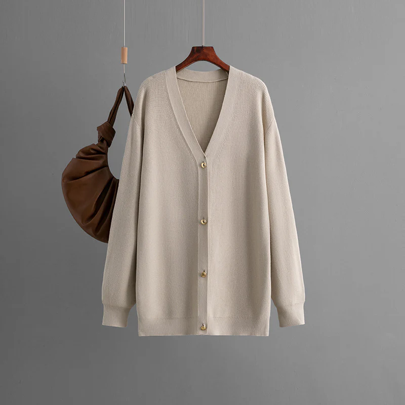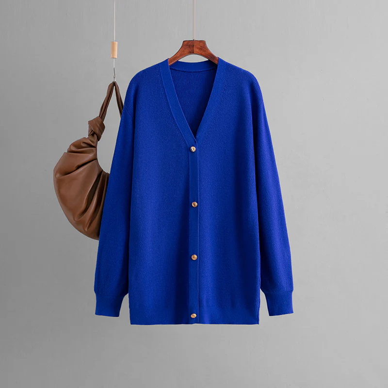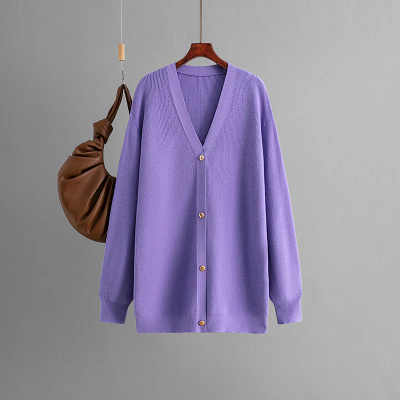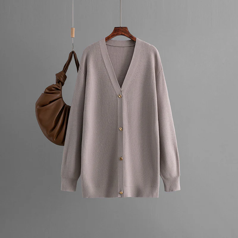 DEANWANGKT 2025 cross-border V-neck knitted cardigan women's New autumn and winter solid color loose medium and long sweater jacket top women