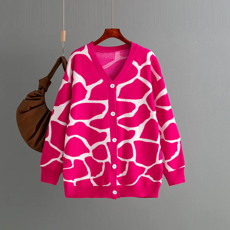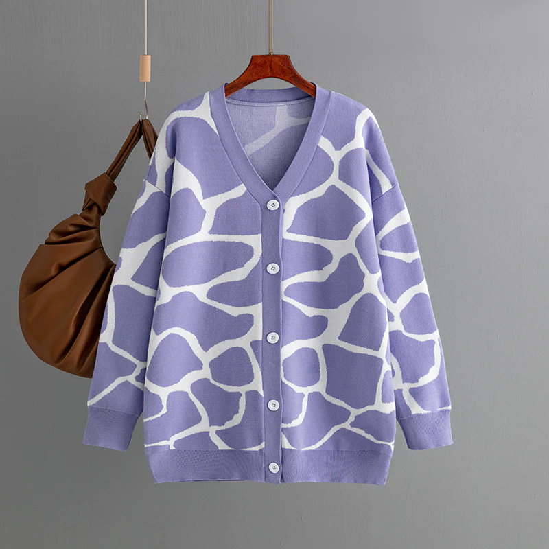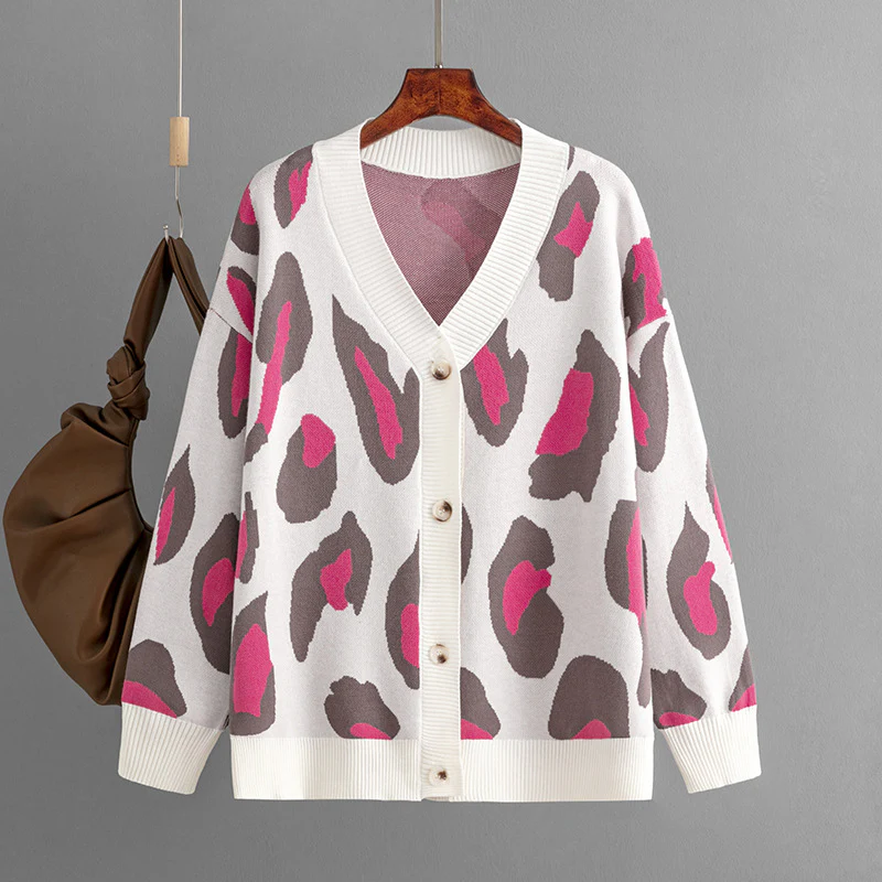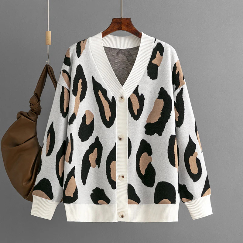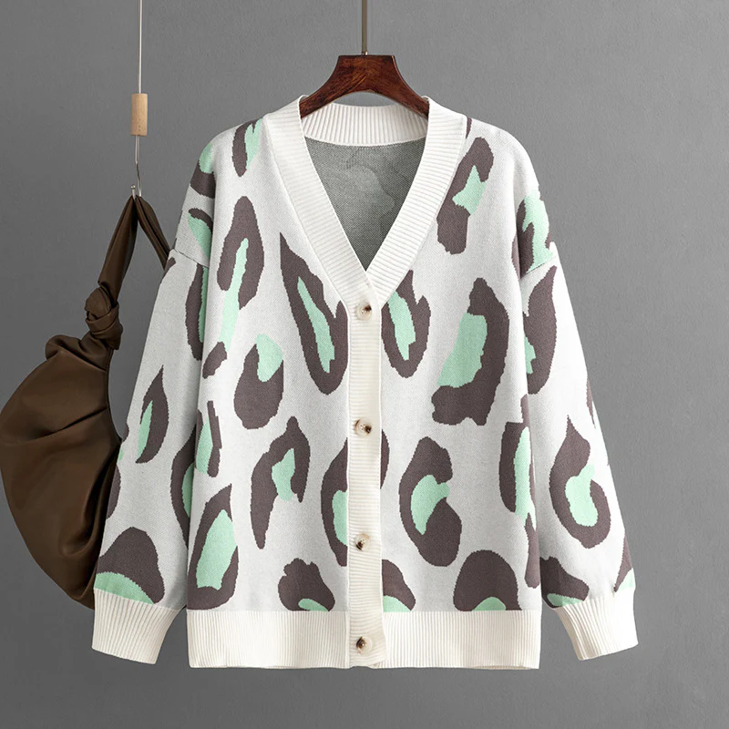 DEANWANGKT Color leopard print jacquard cardigan cross-border autumn and winter fashion knitted jacket loose sweater women
