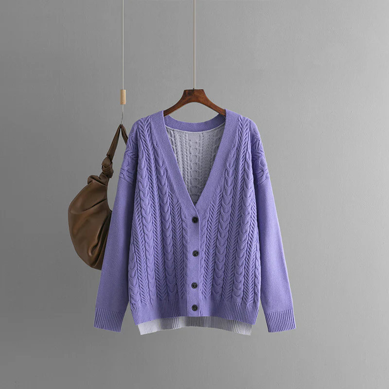 DEANWANGKT New autumn and winter new 2025 trade loose color matching twist V-neck knitted cardigan wear casual sweater jacket women