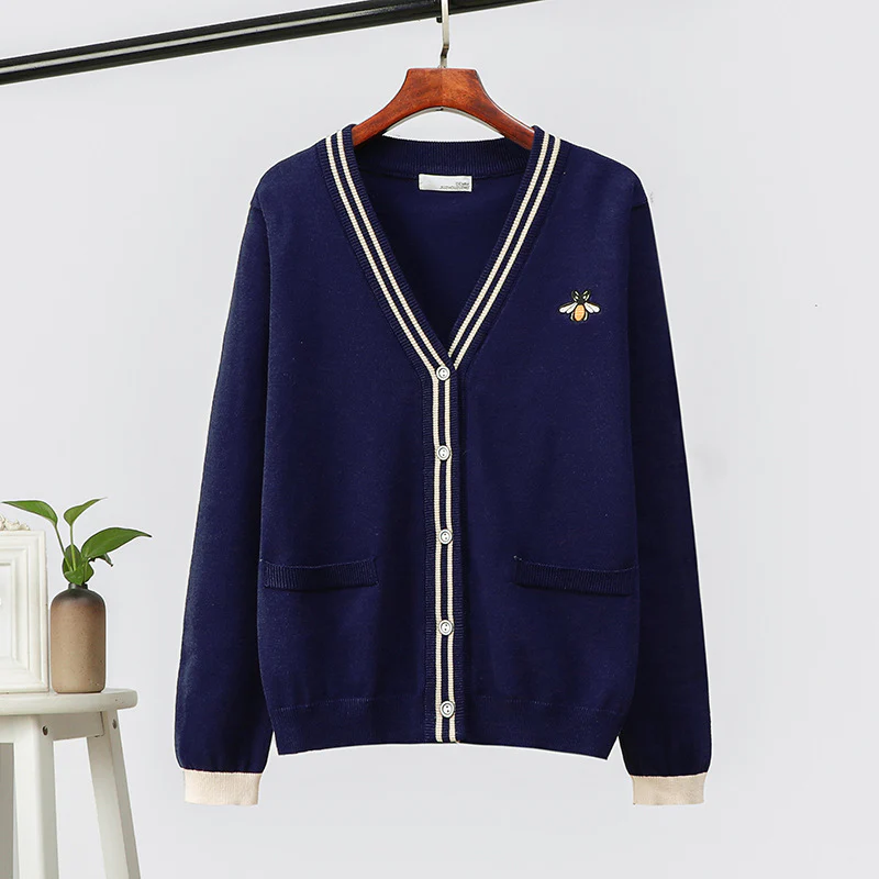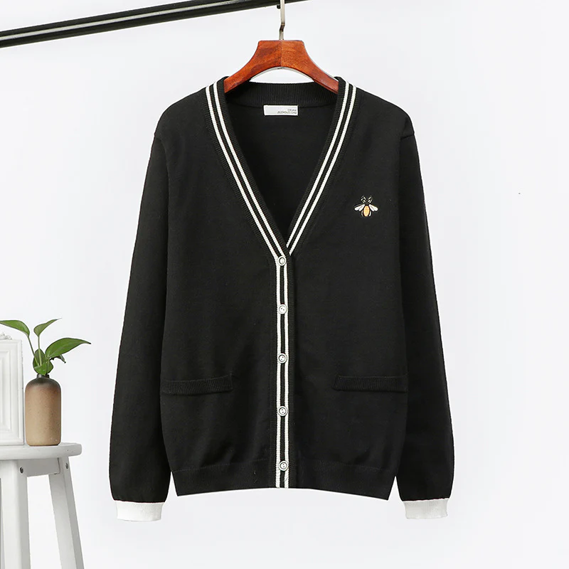 DEANWANGKT High-quality sweater women's new autumn and winter embroidery little bee thick knitted sweater top cardigan jacket in New