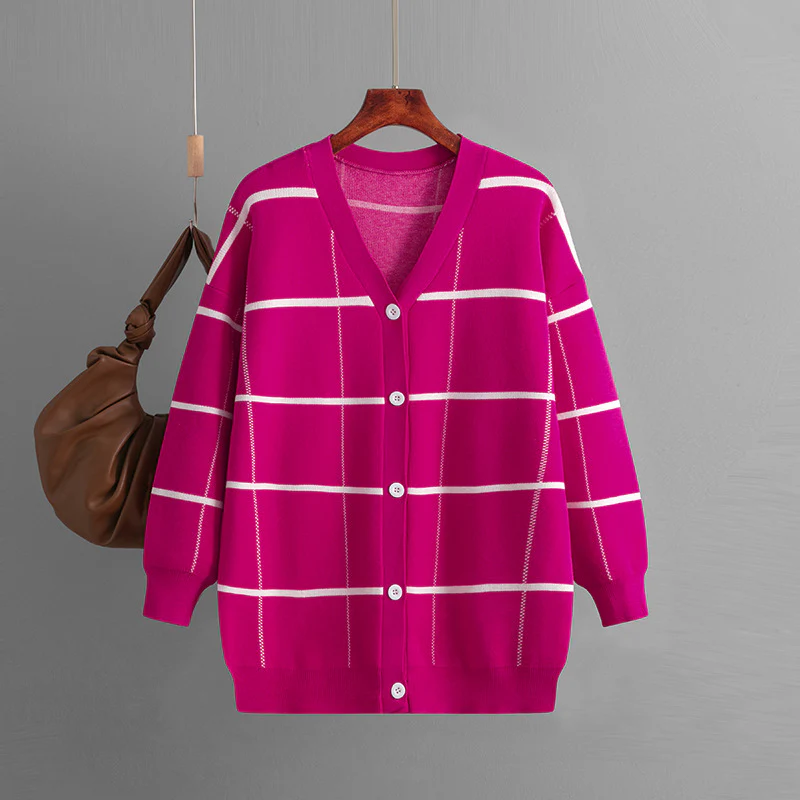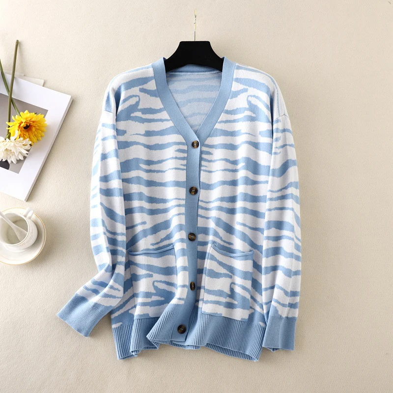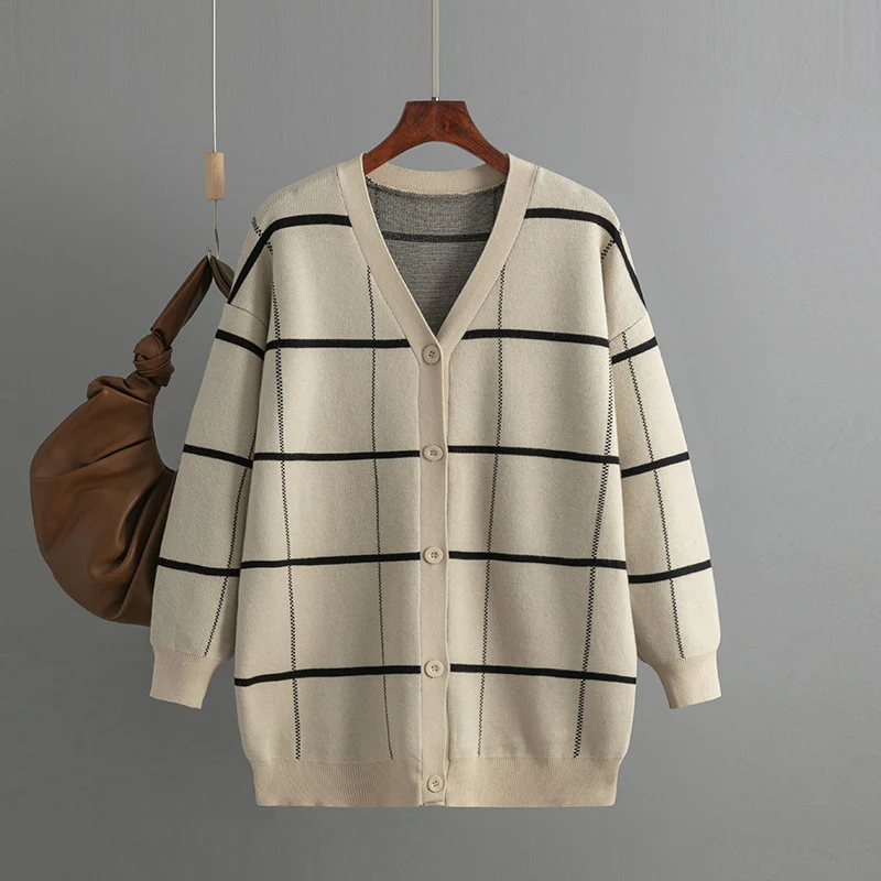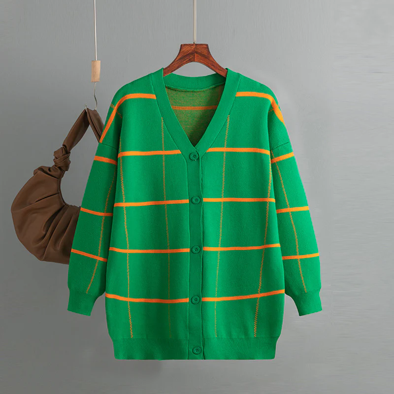 DEANWANGKT autumn and winter new knitted sweater cardigan women's plaid jacket cross-border women's clothing simple loose long-sleeved top