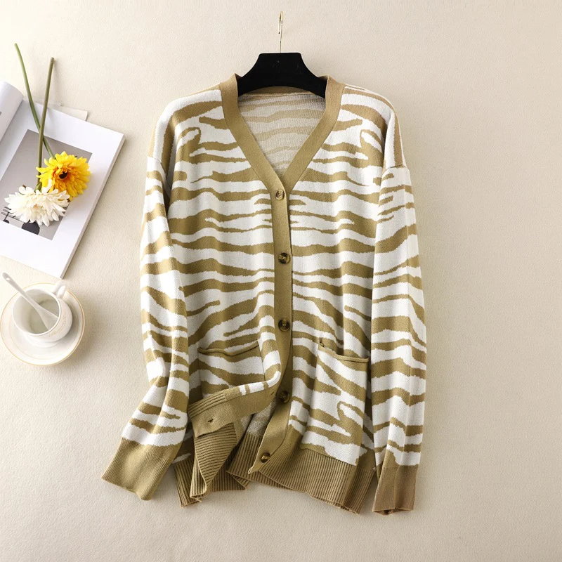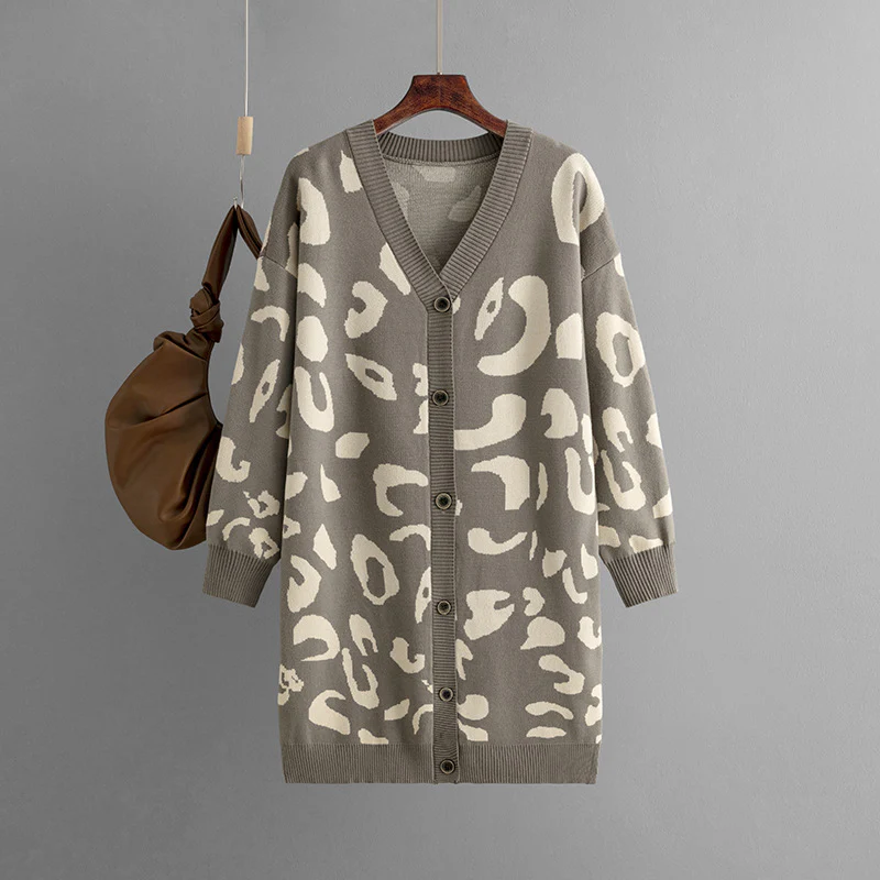 DEANWANGKT autumn and winter 2025 2025 trade new knitted sweater medium and long leopard print sweater cardigan women's loose coat