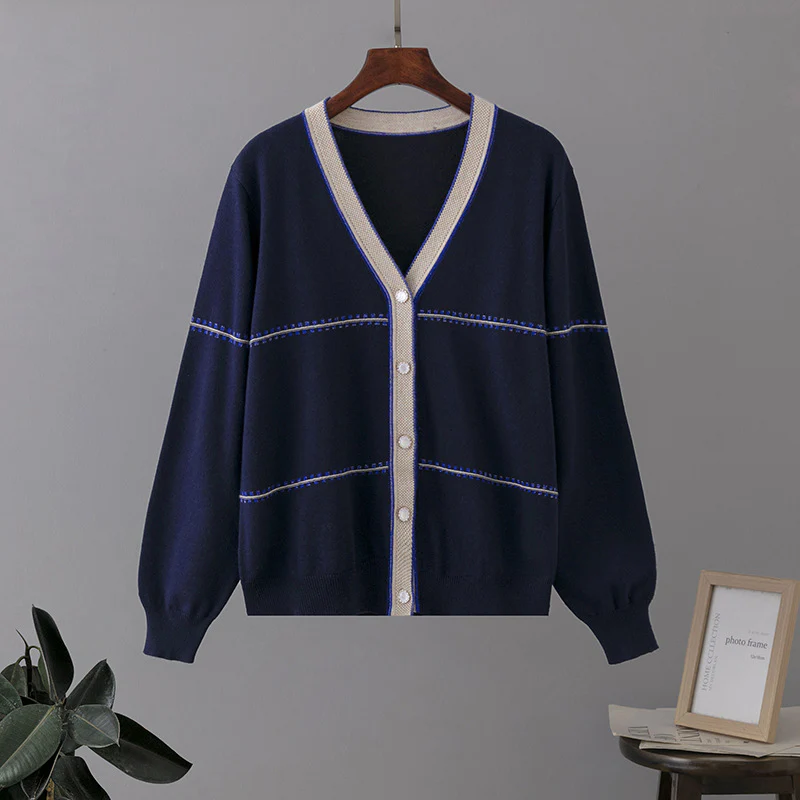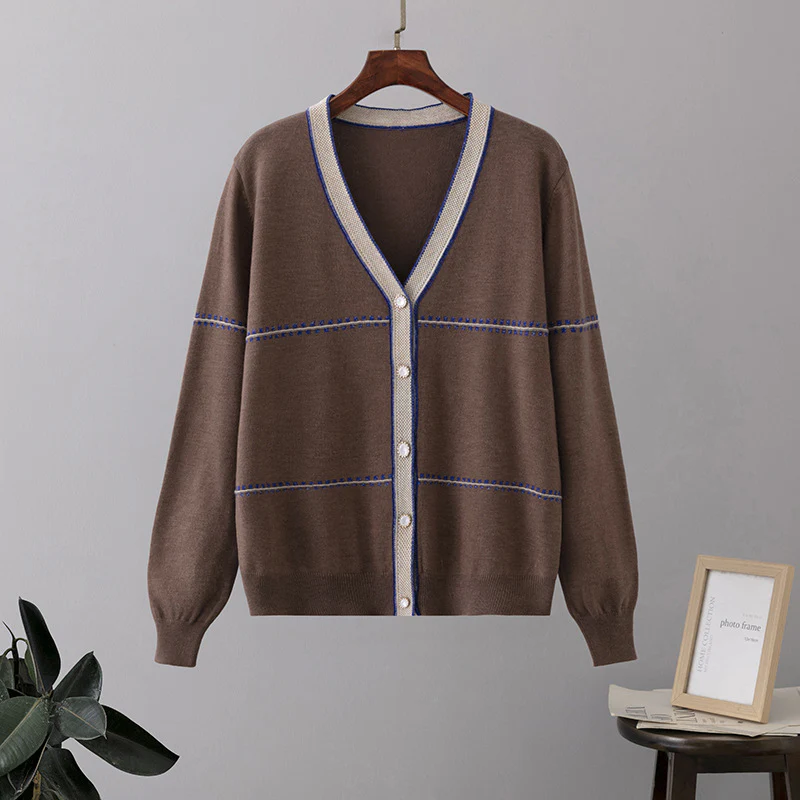 DEANWANGKT Cross-border women's knitted cardigan women's autumn and winter new v-neck long-sleeved loose large-size sweater top coat
