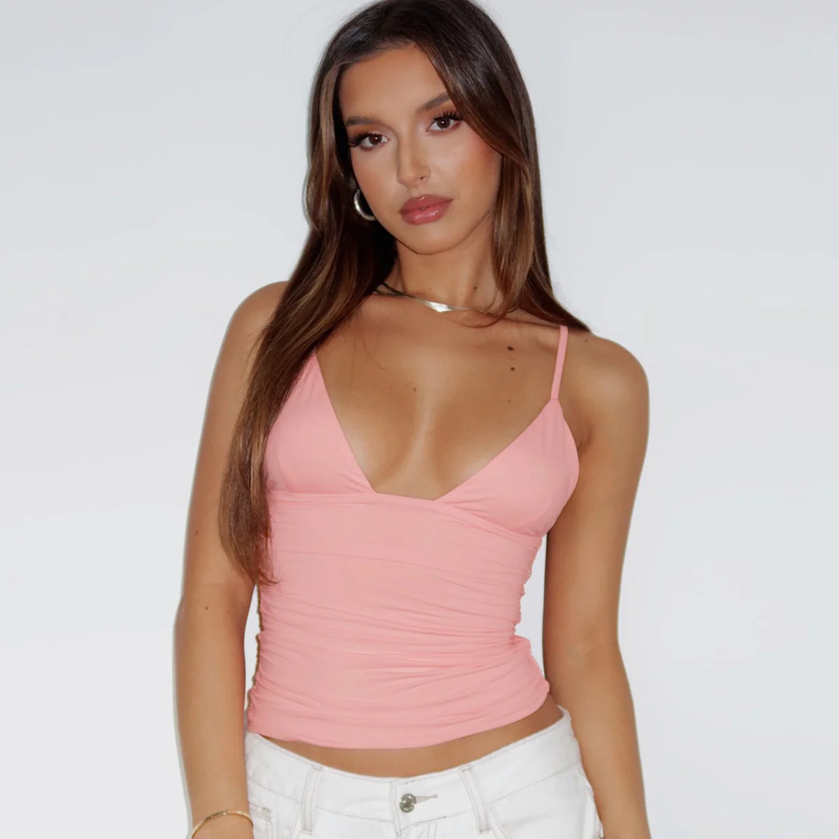 MOMENTLOVER Spice girl niche neck slim strap vest, 2025 style ring, a variety of wearing methods, deep V backless sling wholesale