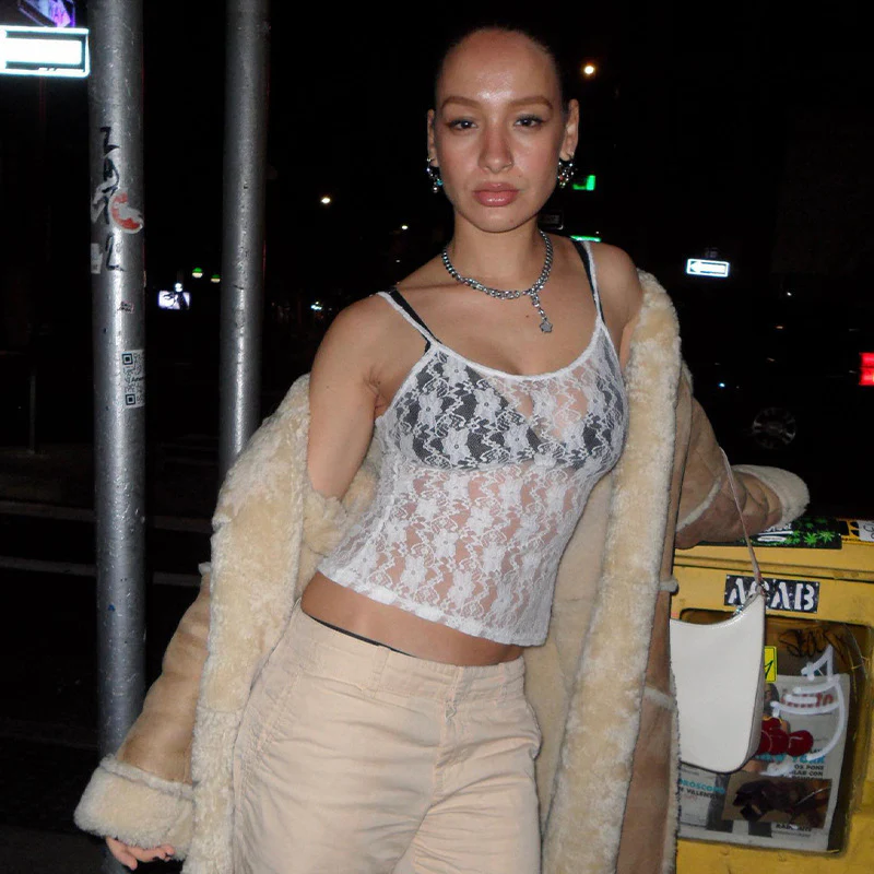 DEANWANGKT 2025 Spice Girls Fashion Plum Blossom Lace Big U-Neck Suspender, Niche Sexy Perspective Slim Top Wholesale