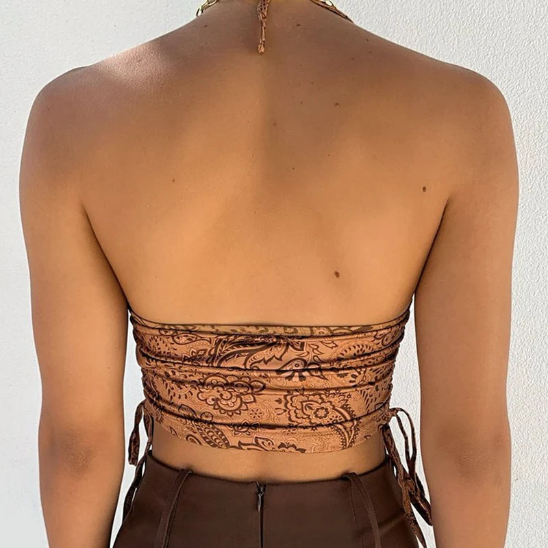 DEANWANGKT 2025 ins style sling new women's clothing printed double pleated design sense slim fit sexy Spice girl vest women
