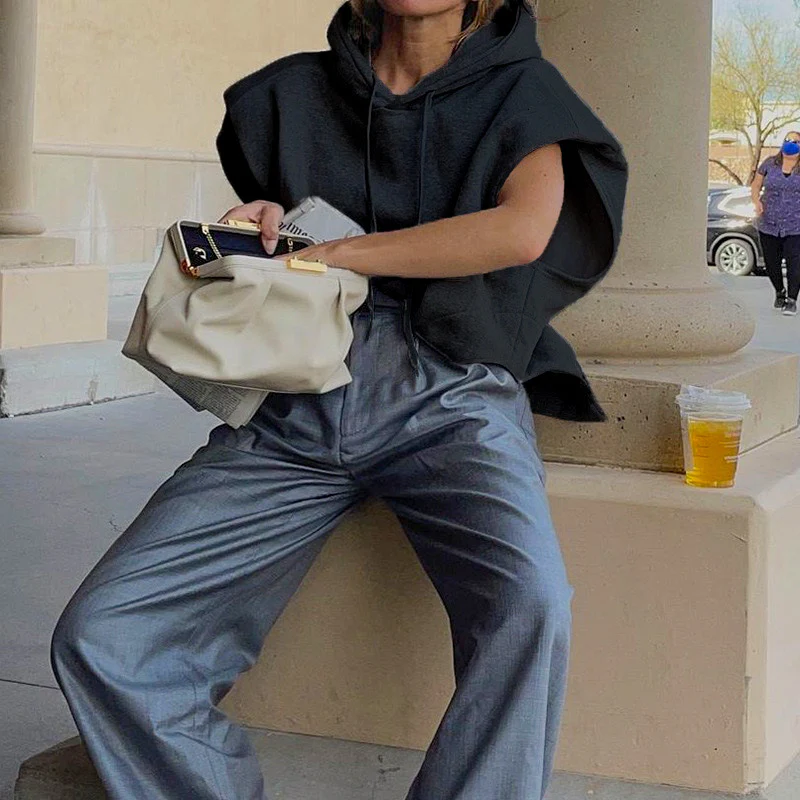 DEANWANGKT Cross-border 2025 ins style autumn new women's clothing solid color shoulder padded hoodie casual sweater vest jacket