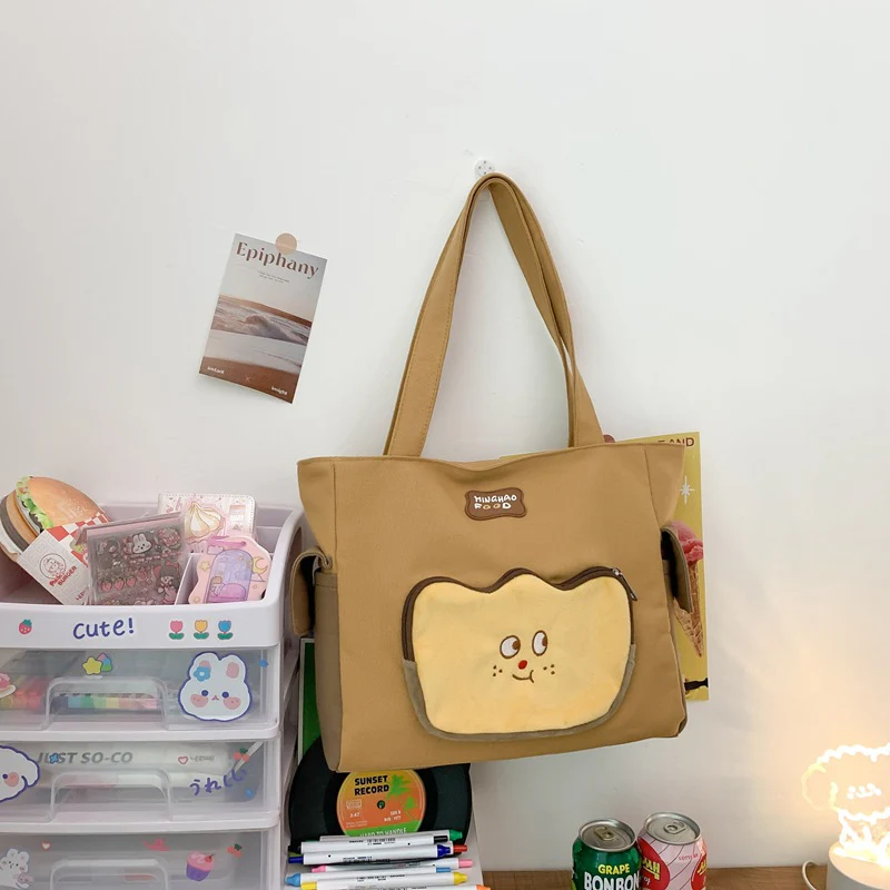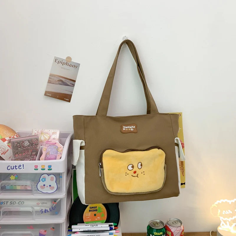 DEANWANGKT 2025 Cartoon cute tote bag autumn new fashionable large-capacity shoulder bag girl personality toast shopping bag