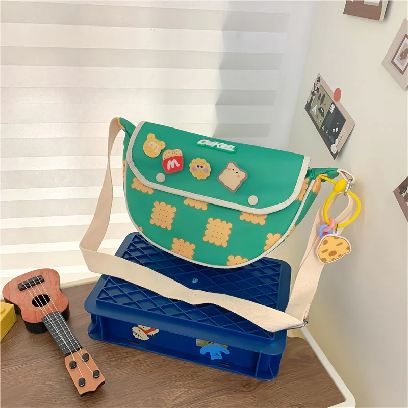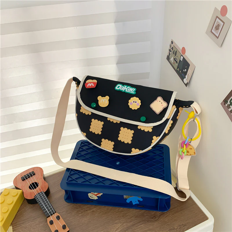 DEANWANGKT 2025 cute canvas bag popular new little fresh girl messenger bag fashion casual printed soft girl shoulder bag