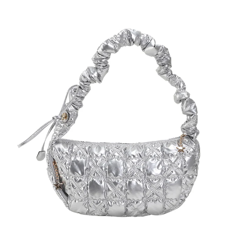 DEANWANGKT 2025 Cross-border bag new Korean version pleated cloud bag down bag underarm dumpling bag women's bag shoulder messenger bag