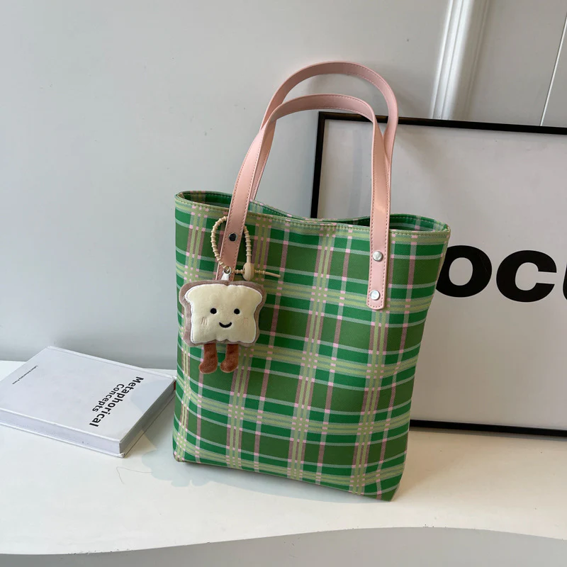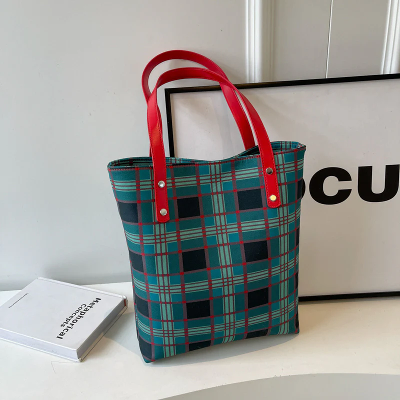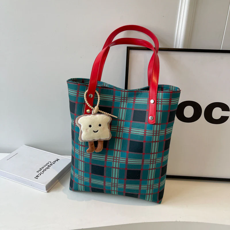 DEANWANGKT 2025 Korean version of fashion plaid tote bag popular new large-capacity casual shoulder bag Popular trade retro Popular style shopping bag