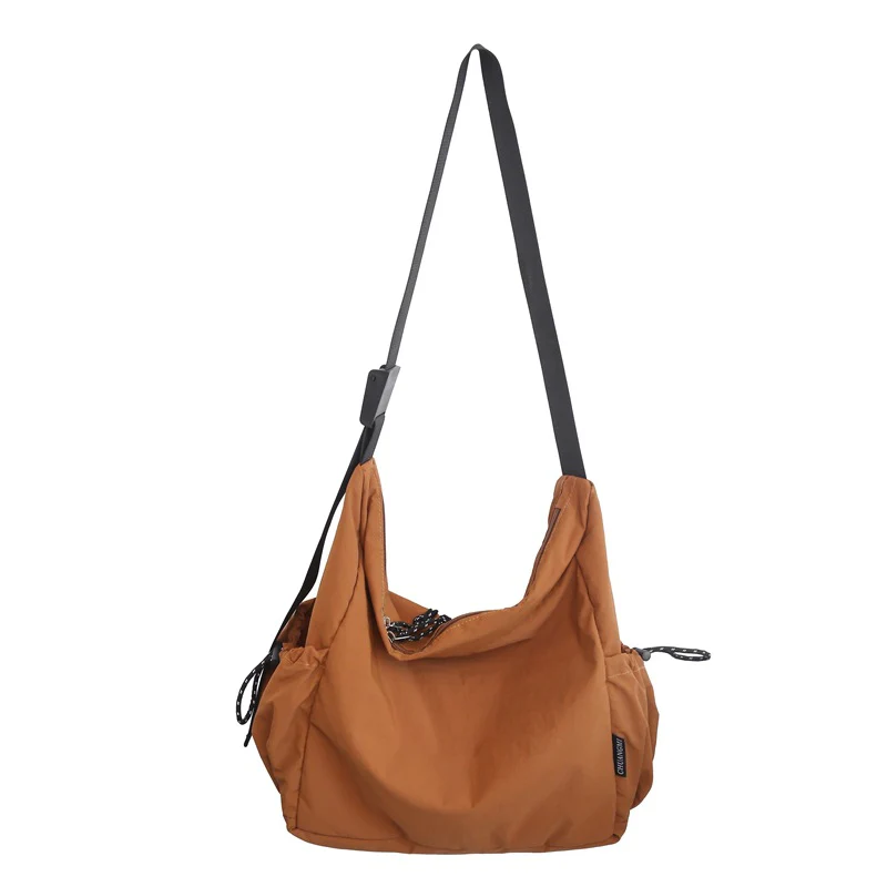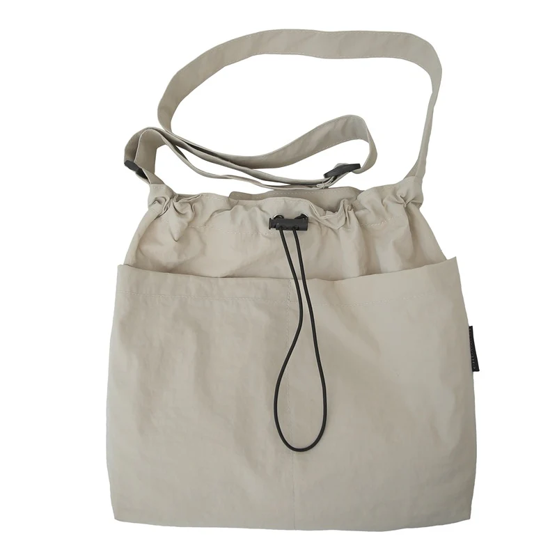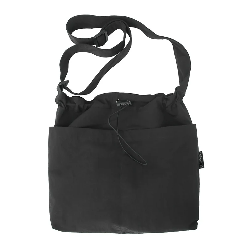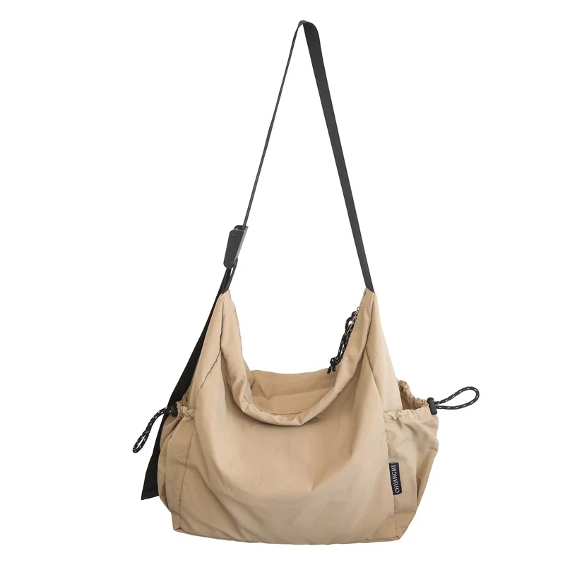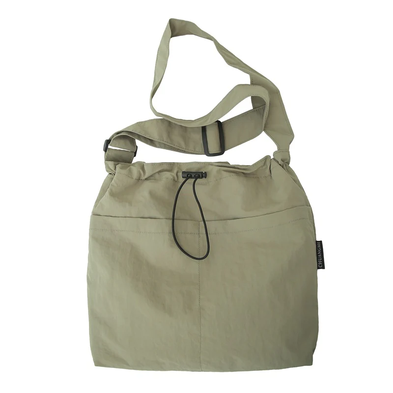DEANWANGKT 2025 Korean version of fashion nylon shoulder bag popular new casual drawstring canvas messenger bag large capacity men's and women's tote bag