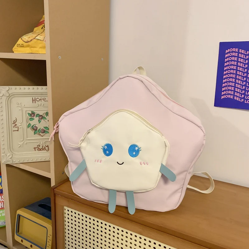DEANWANGKT 2025 Cute little fresh star backpack popular new sweet cartoon five-pointed star backpack doll travel bag