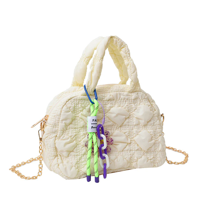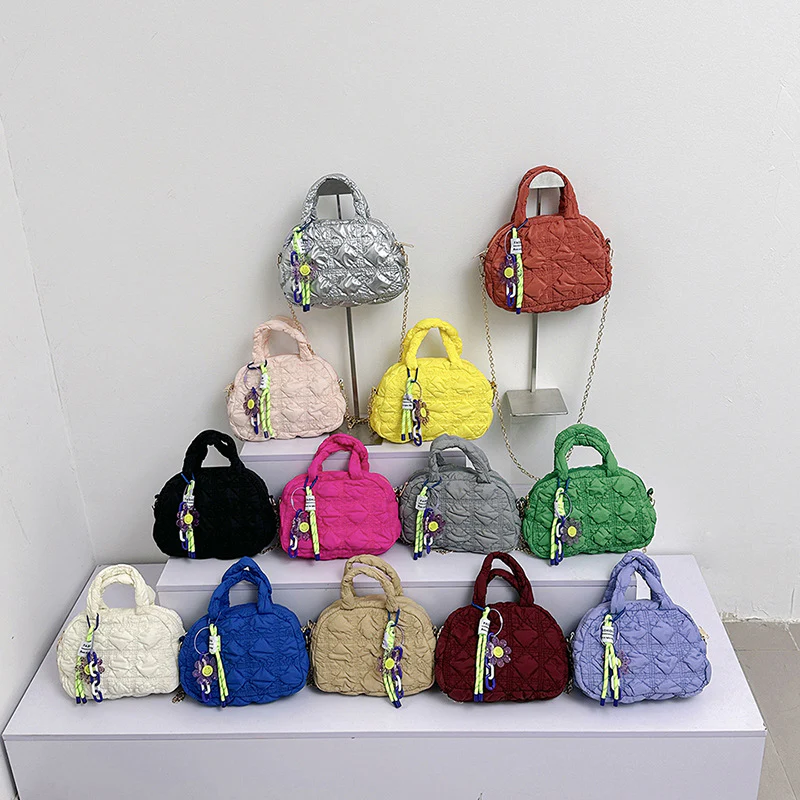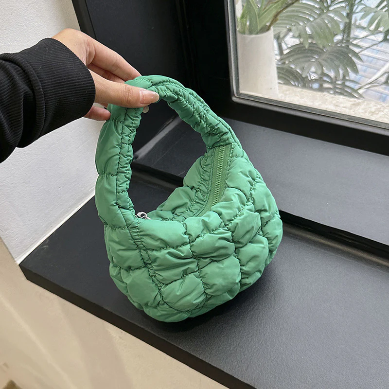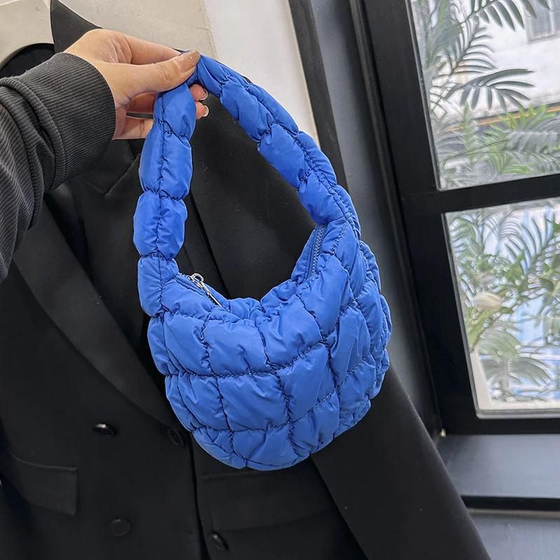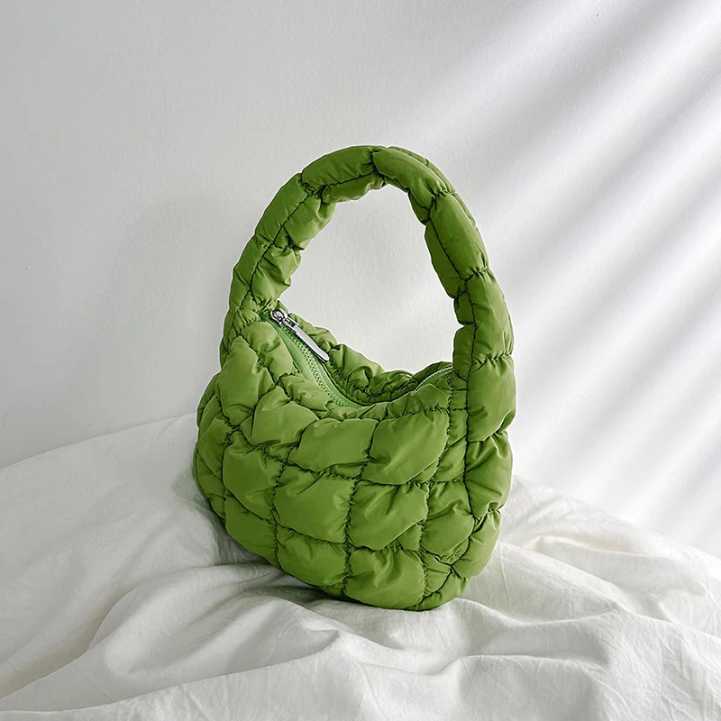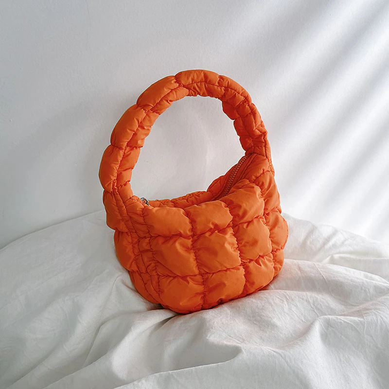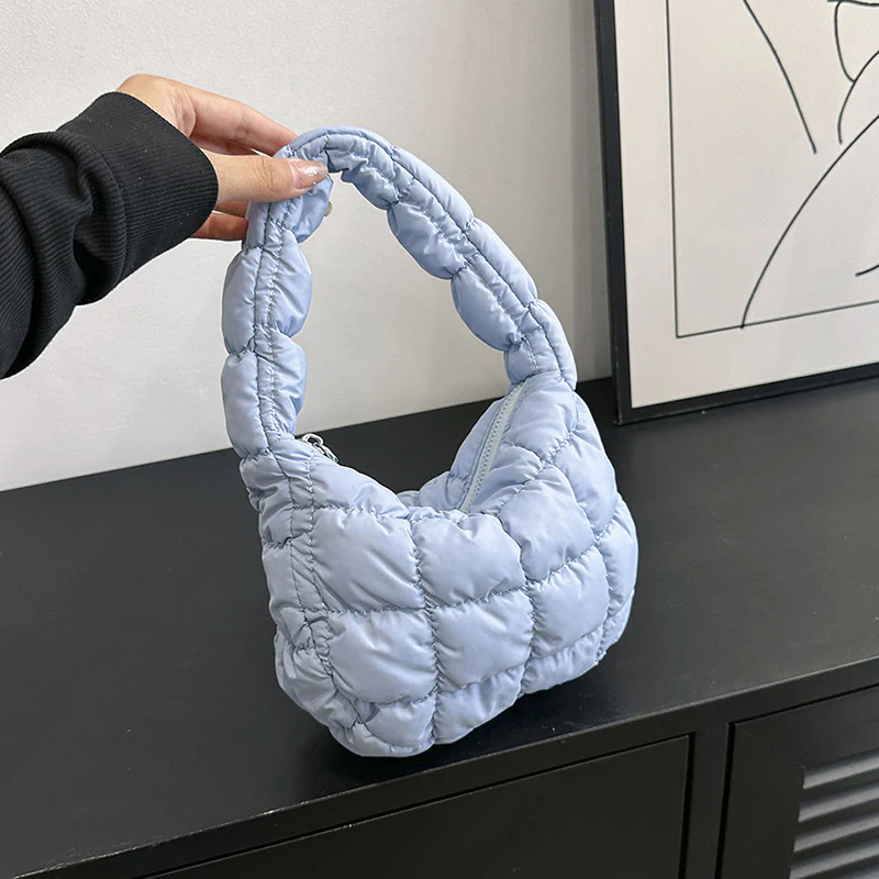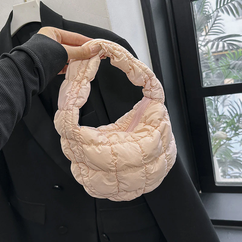 DEANWANGKT 2025 Korean version of fashion bubble grid handbag new personalized embroidery thread mini cotton clothing bag personalized pleated cloud bag
