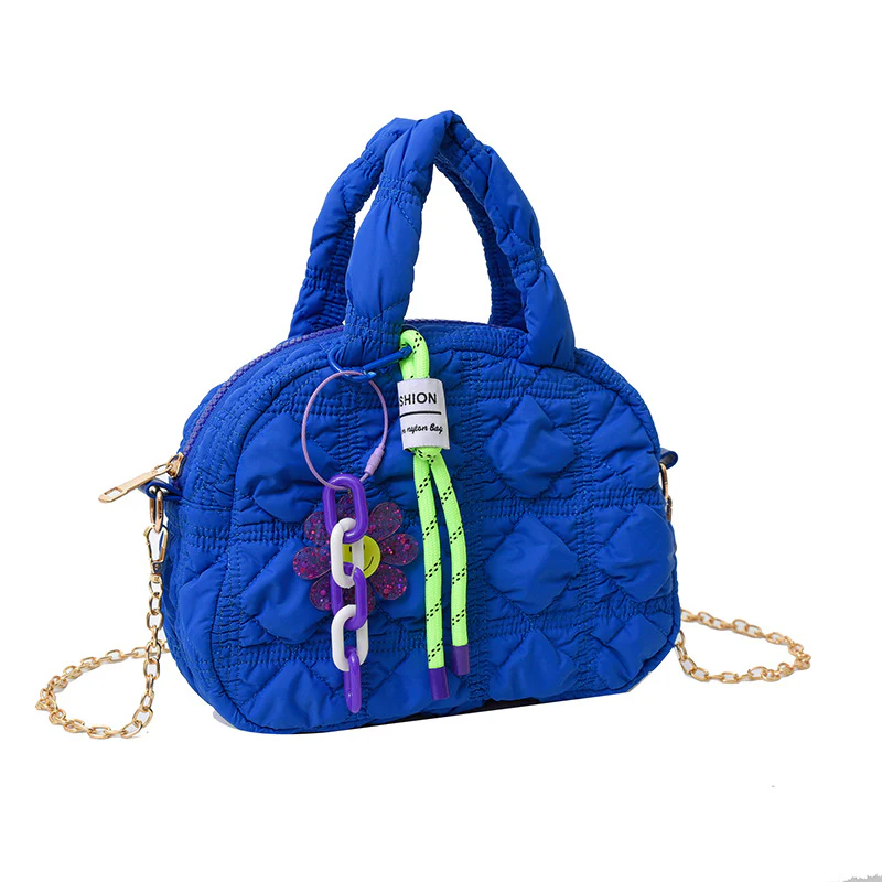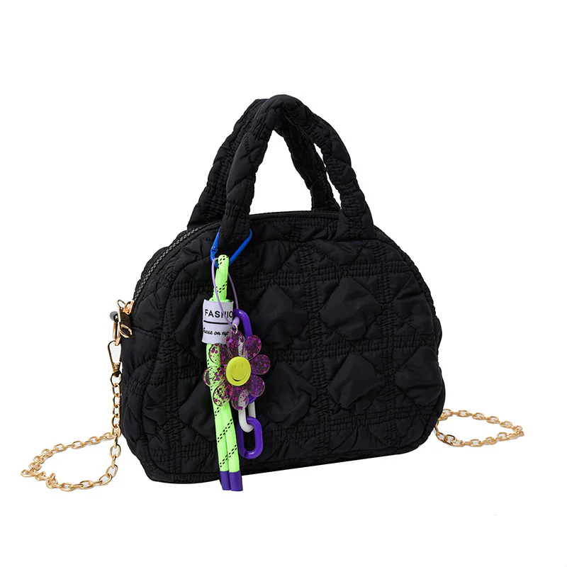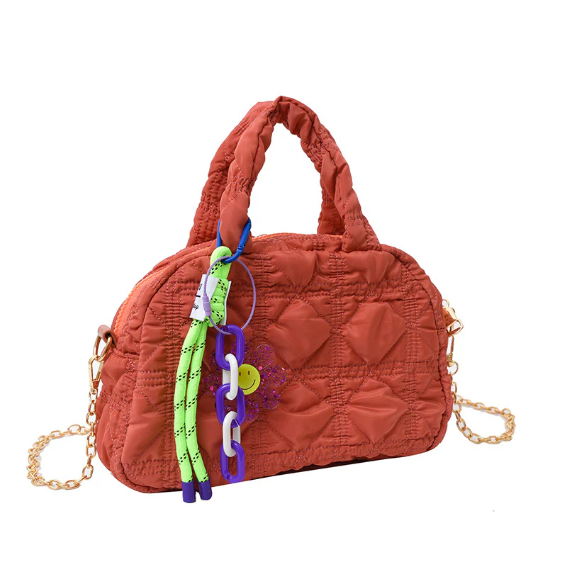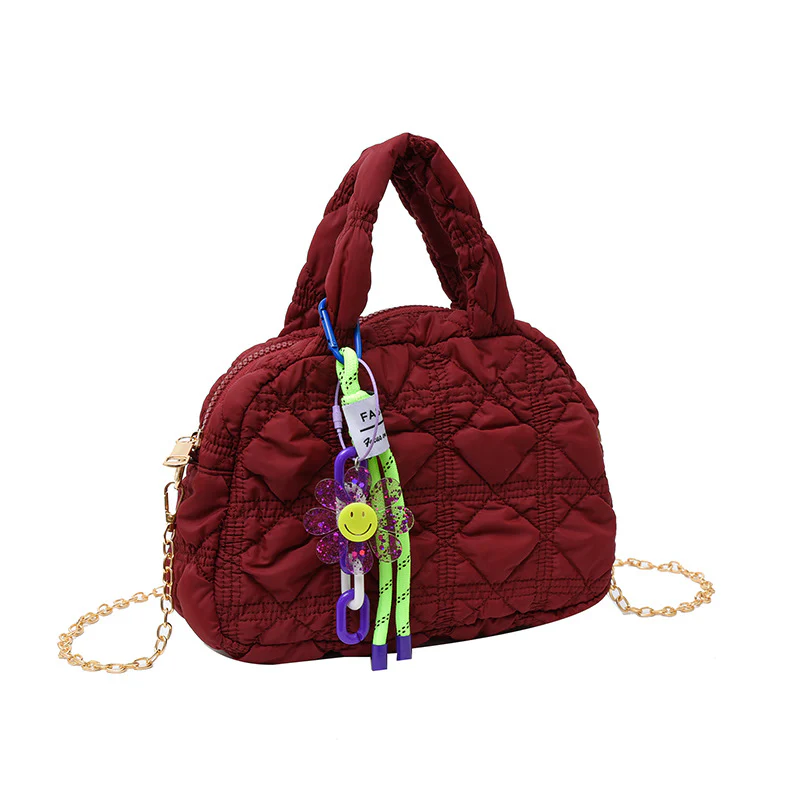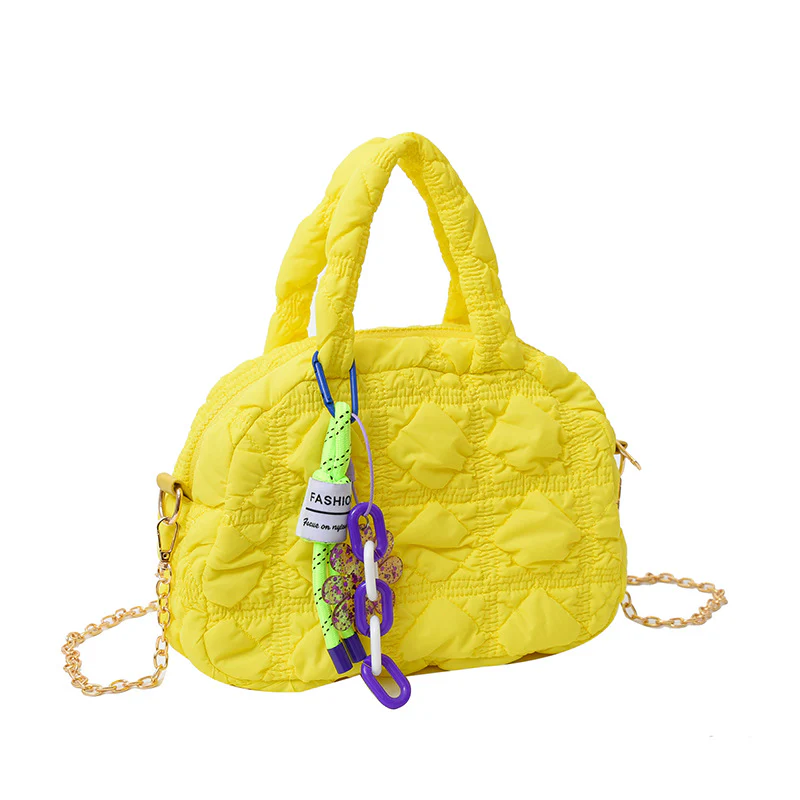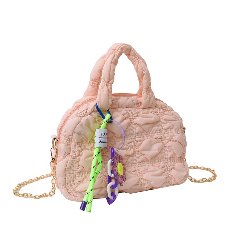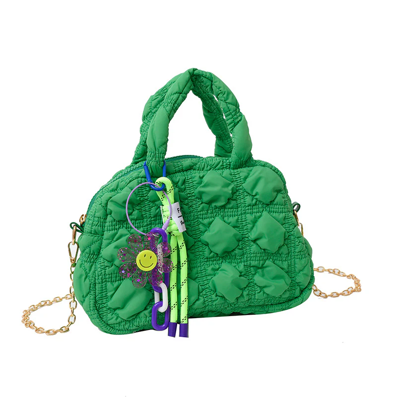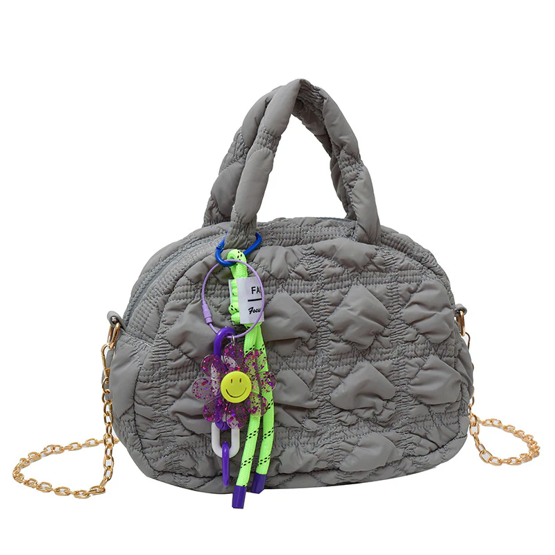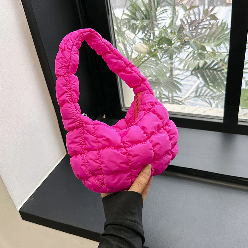DEANWANGKT 2025 Korean version of fashion bubble grid handbag new personalized embroidery thread mini cotton clothing bag personalized pleated cloud bag