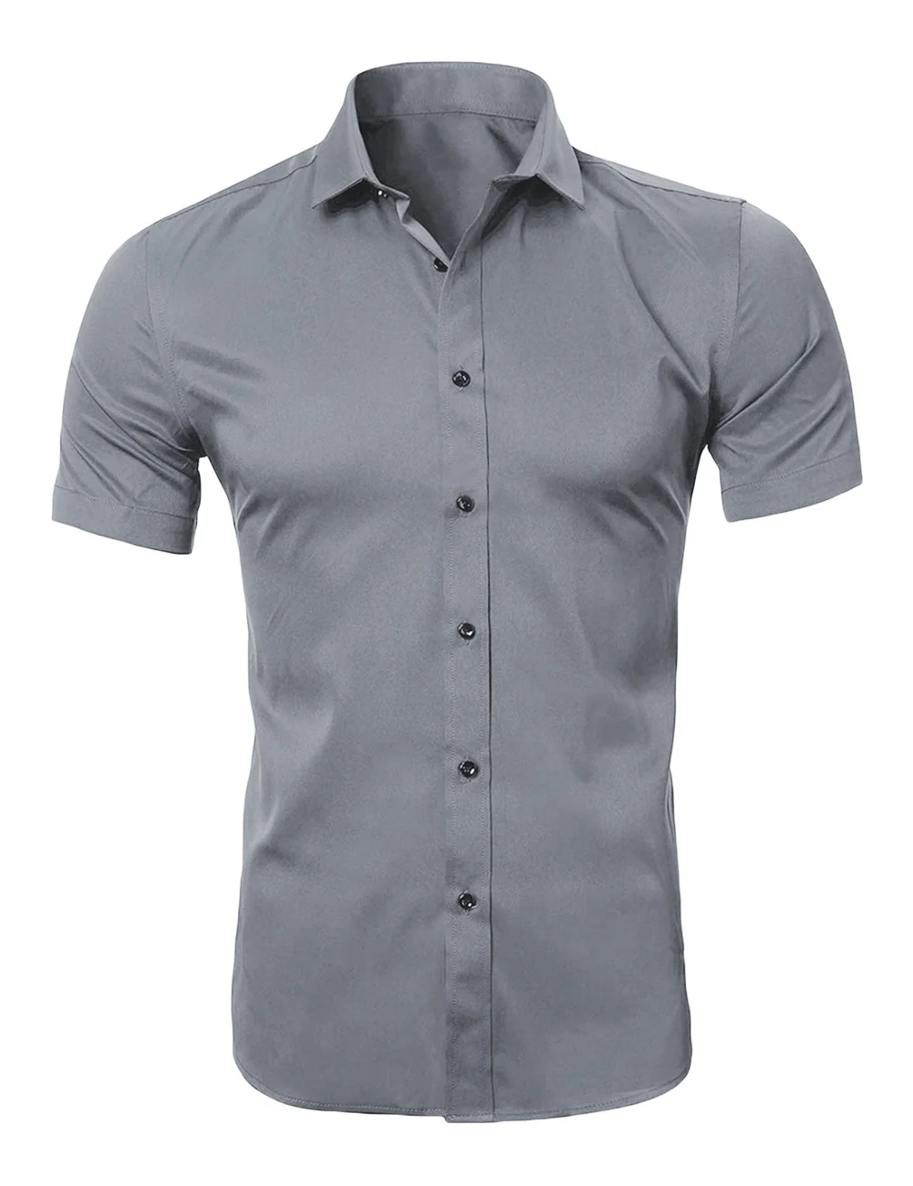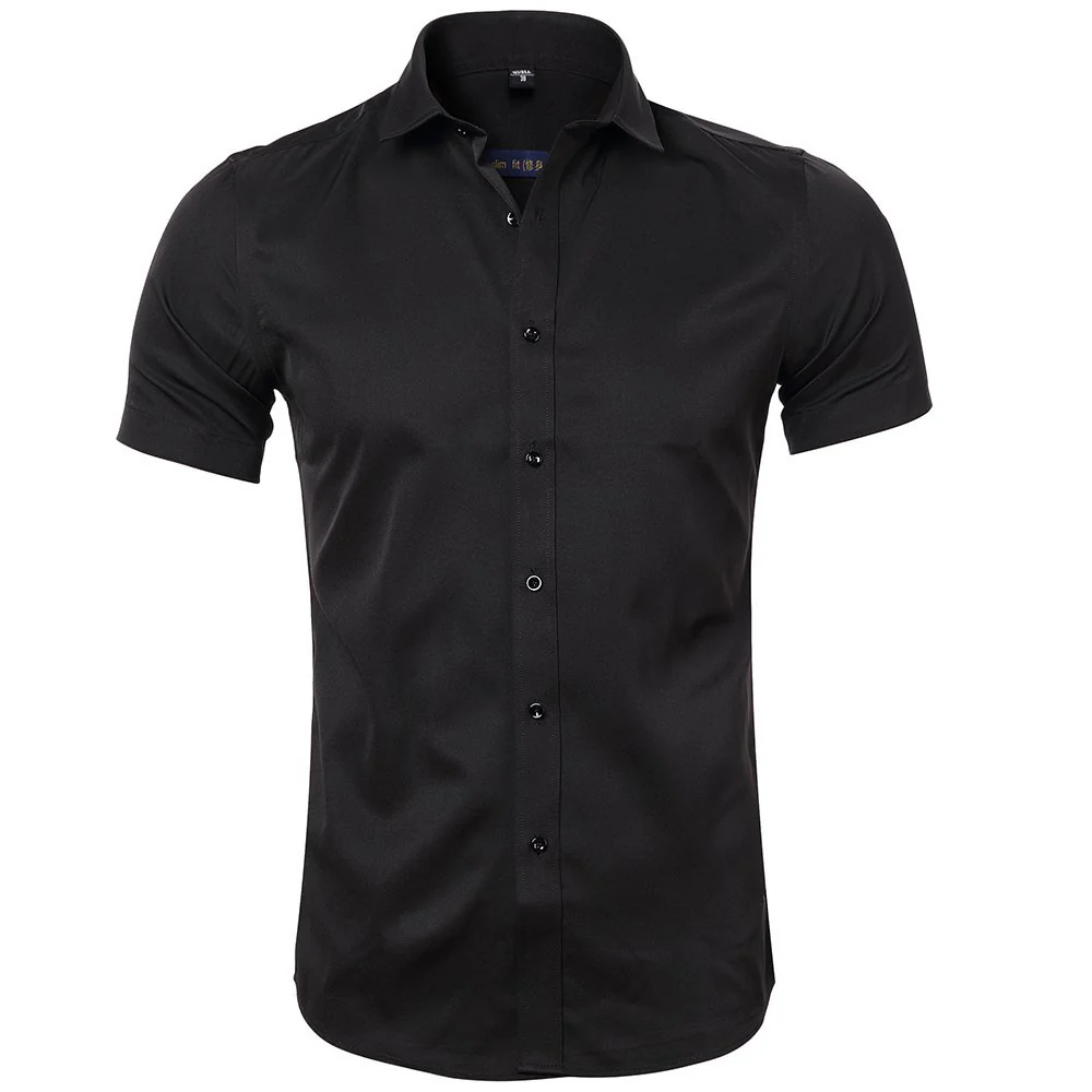 DEANWANGKT 2025 Popular trade business men's short-sleeved shirt men's shirt non-ironing bamboo fiber solid color white inch shirt wholesale