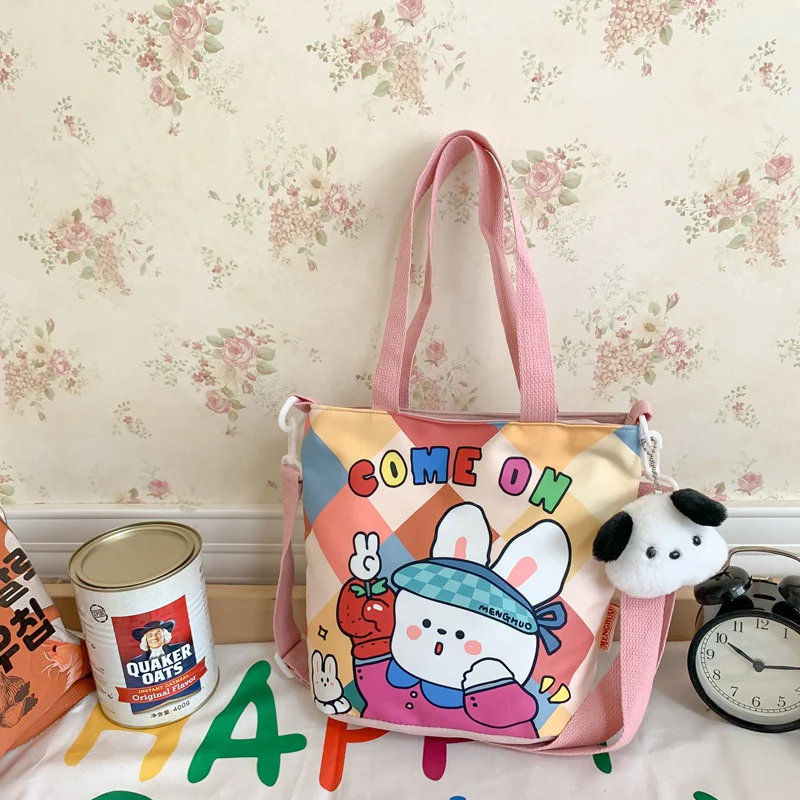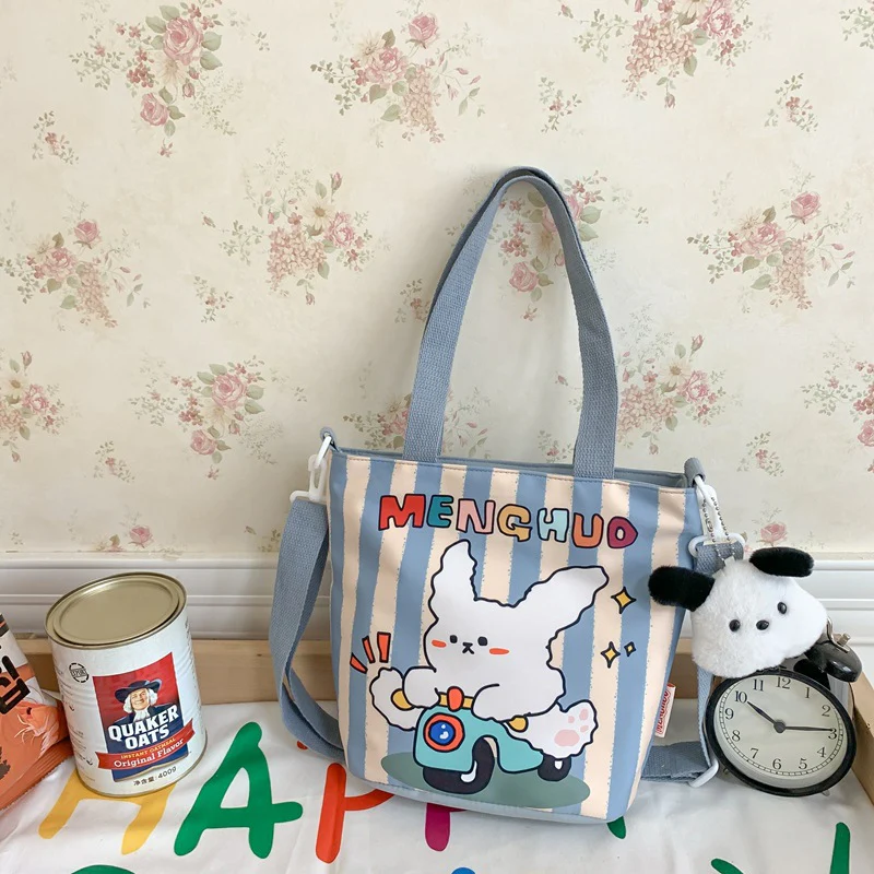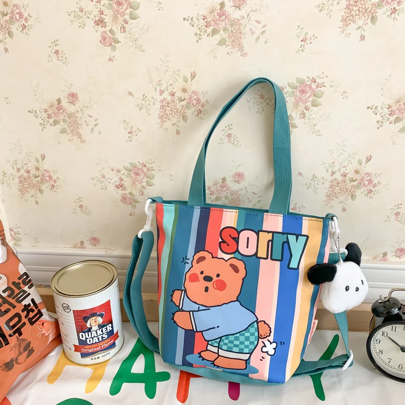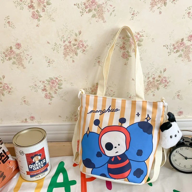 DEANWANGKT 2025 ins cute cartoon graffiti canvas bag Korean version bucket bag girl soft girl handbag shoulder messenger bag