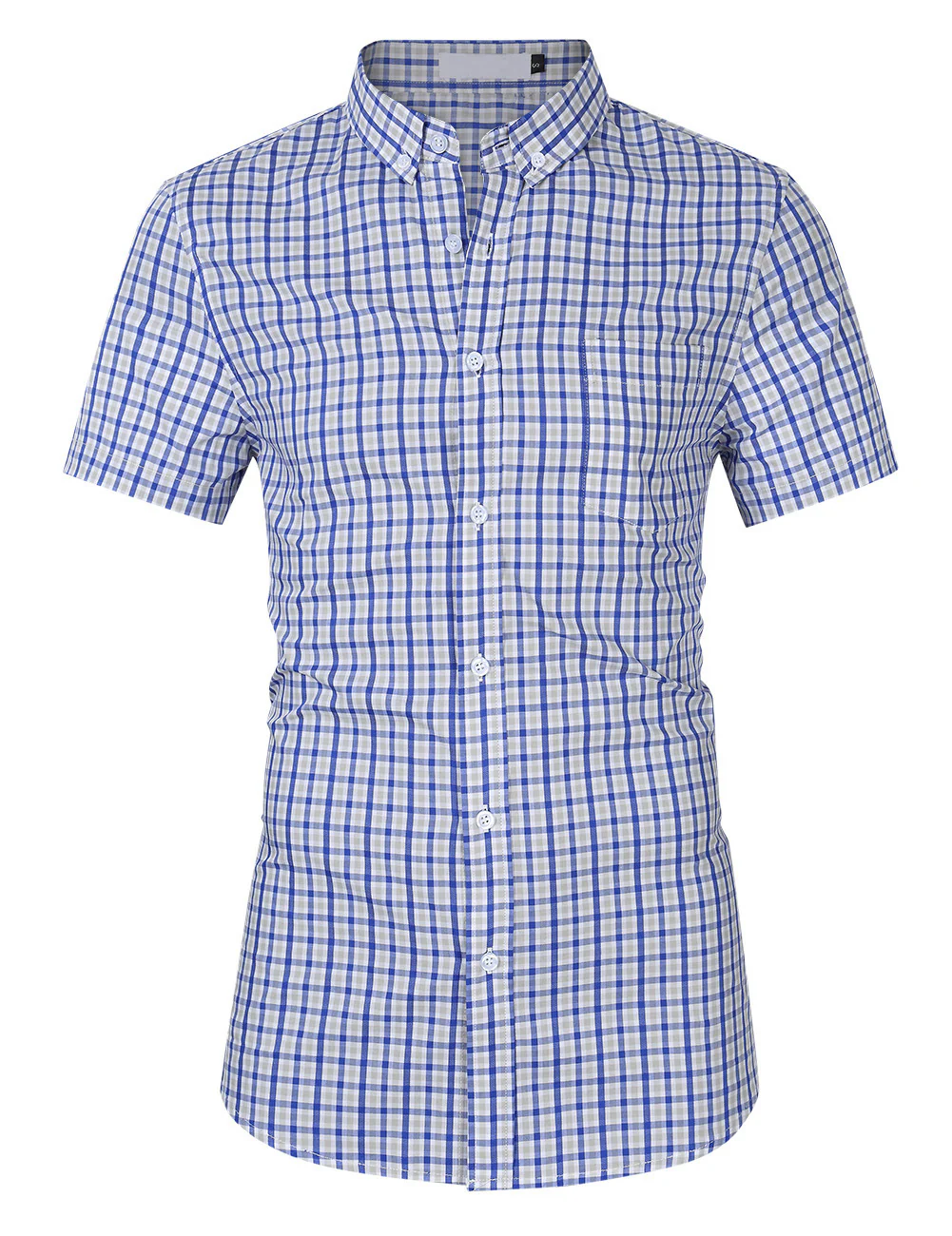 DEANWANGKT 2025 Cross-border exclusive supply for new short-sleeved men's clothing plaid lapel large-size men's shirts popular shirts