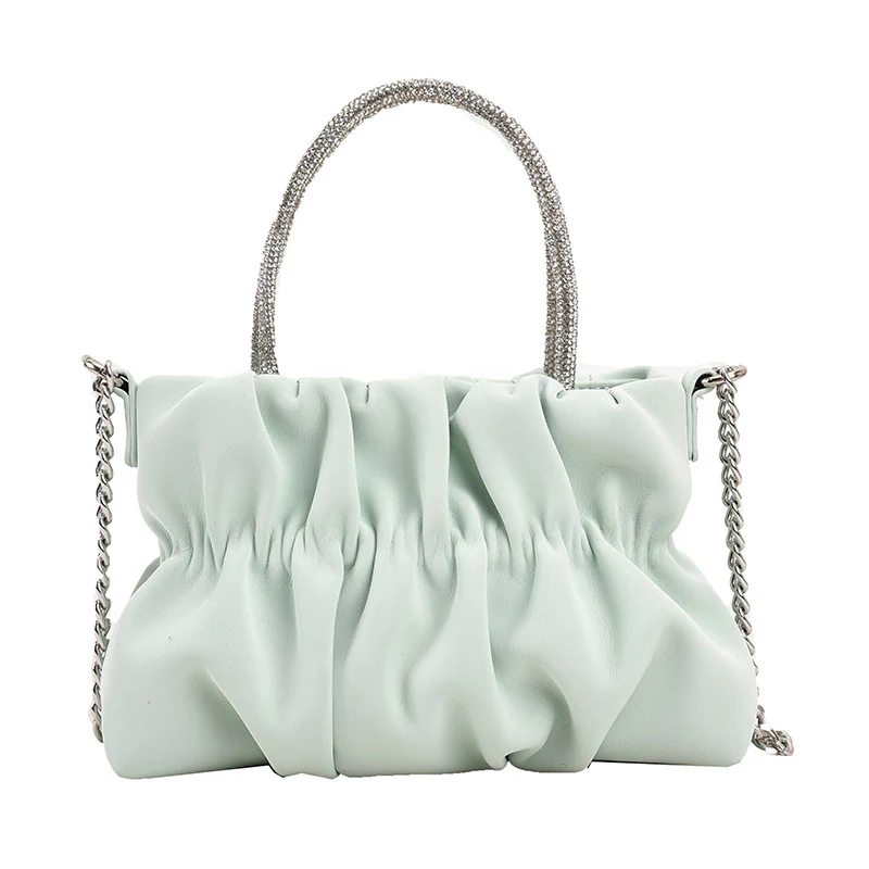 DEANWANGKT 2025 Sweet bright diamond handbag new summer personalized pleated cloud bag fashionable small fresh girl messenger bag