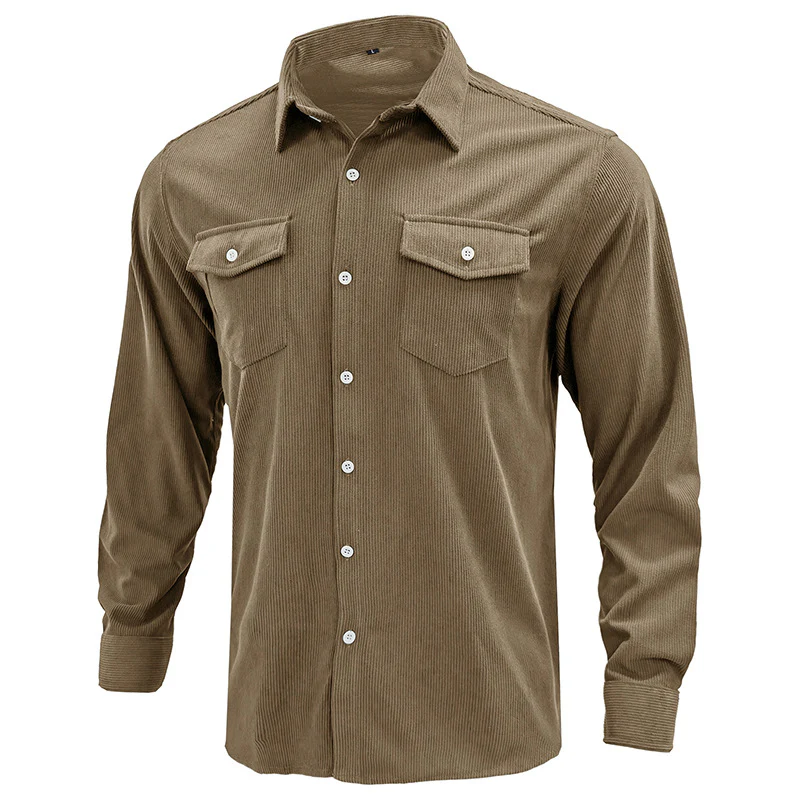 DEANWANGKT 2025 Cross-border men's solid color corduroy shirt men's, men's casual shirt long sleeve autumn and winter shirt jacket