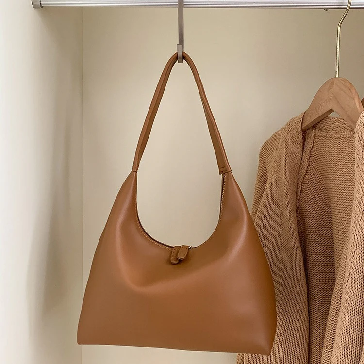 DEANWANGKT 2025 Milk tea color bag gentle wind Korean ins simple and versatile portable soft leather dumpling bag retro shoulder armpit bag