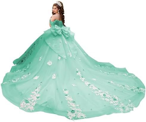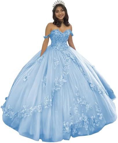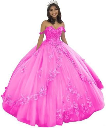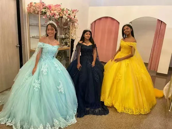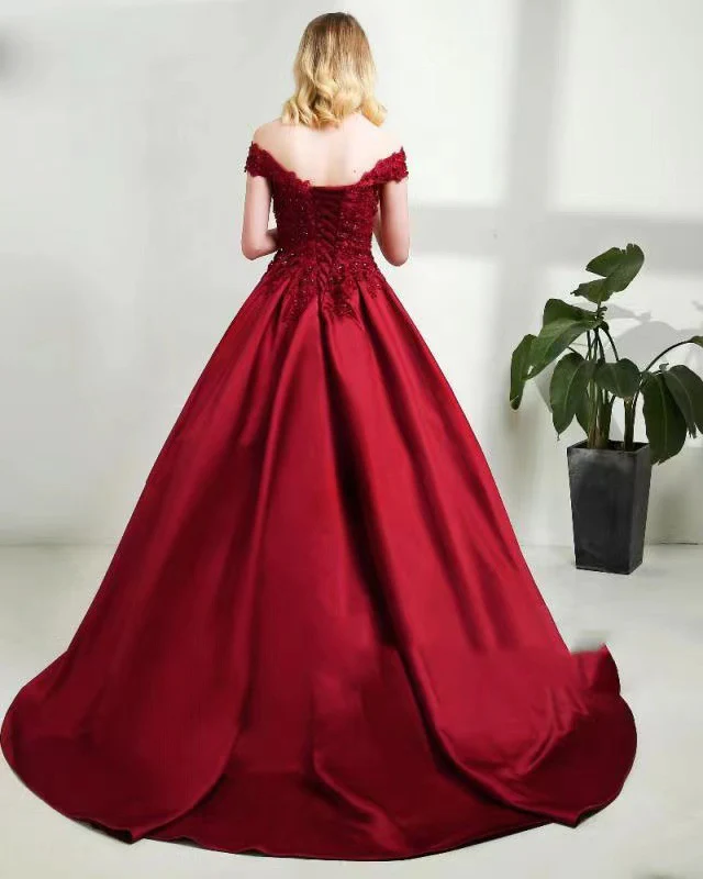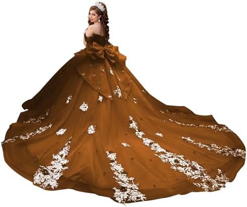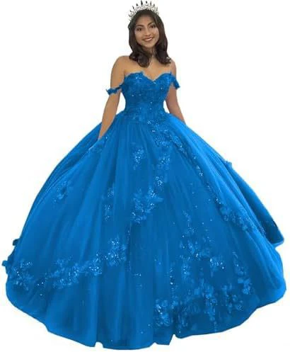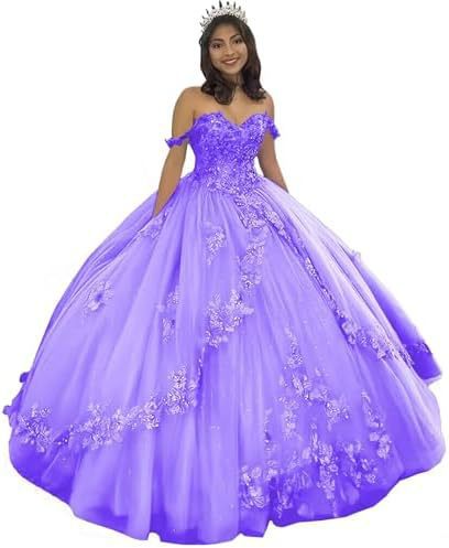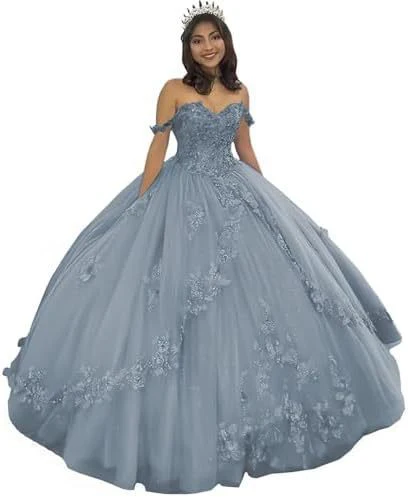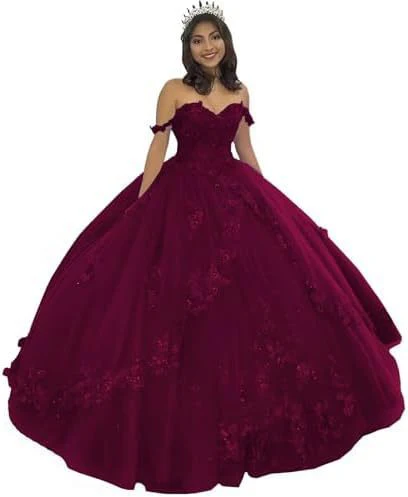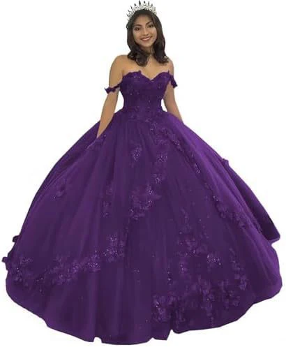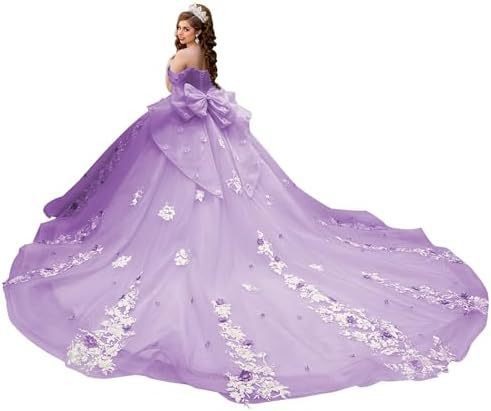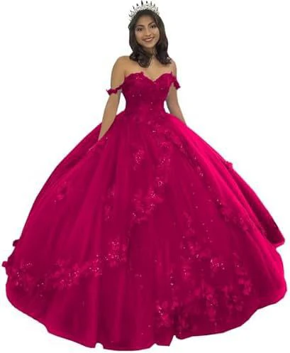 2025Popular, , new evening dress one-word shoulder bar mitzvah dress princess dress three-dimensional flower applique dress