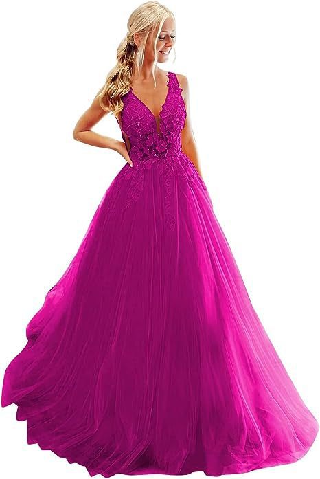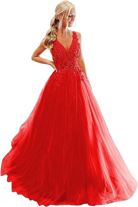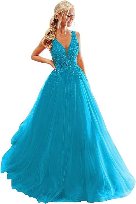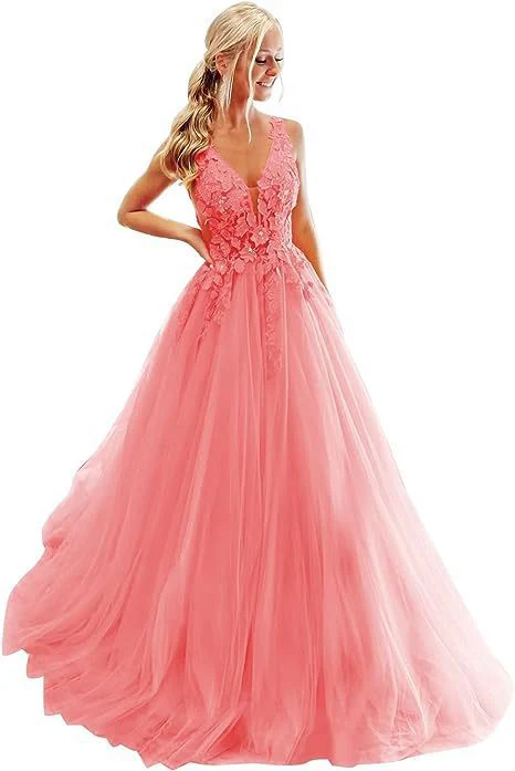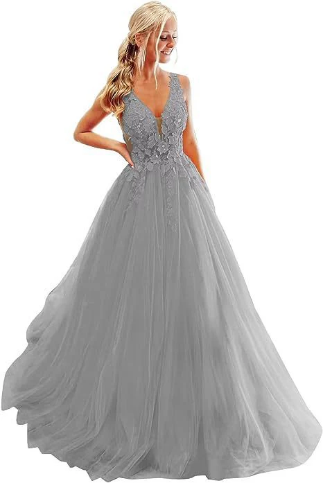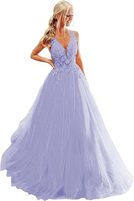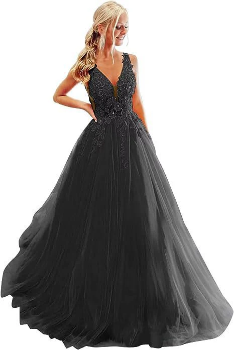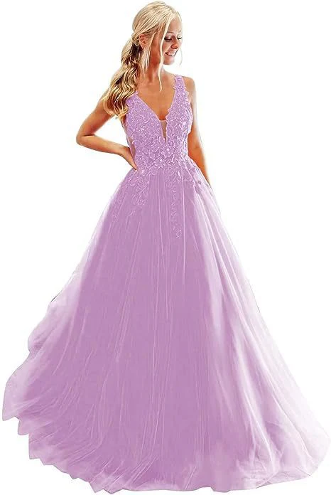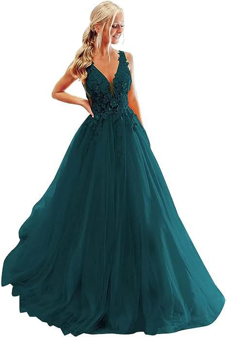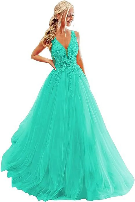 2025V-neck tulle ball dress lace applique long ball dress new formal evening dress